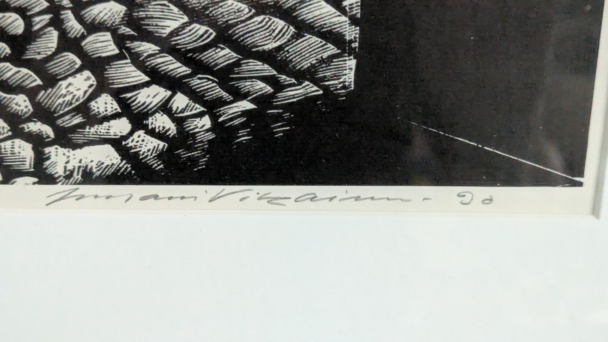 Juhani Vikainen - Signeerattu Puupiirros (1990)