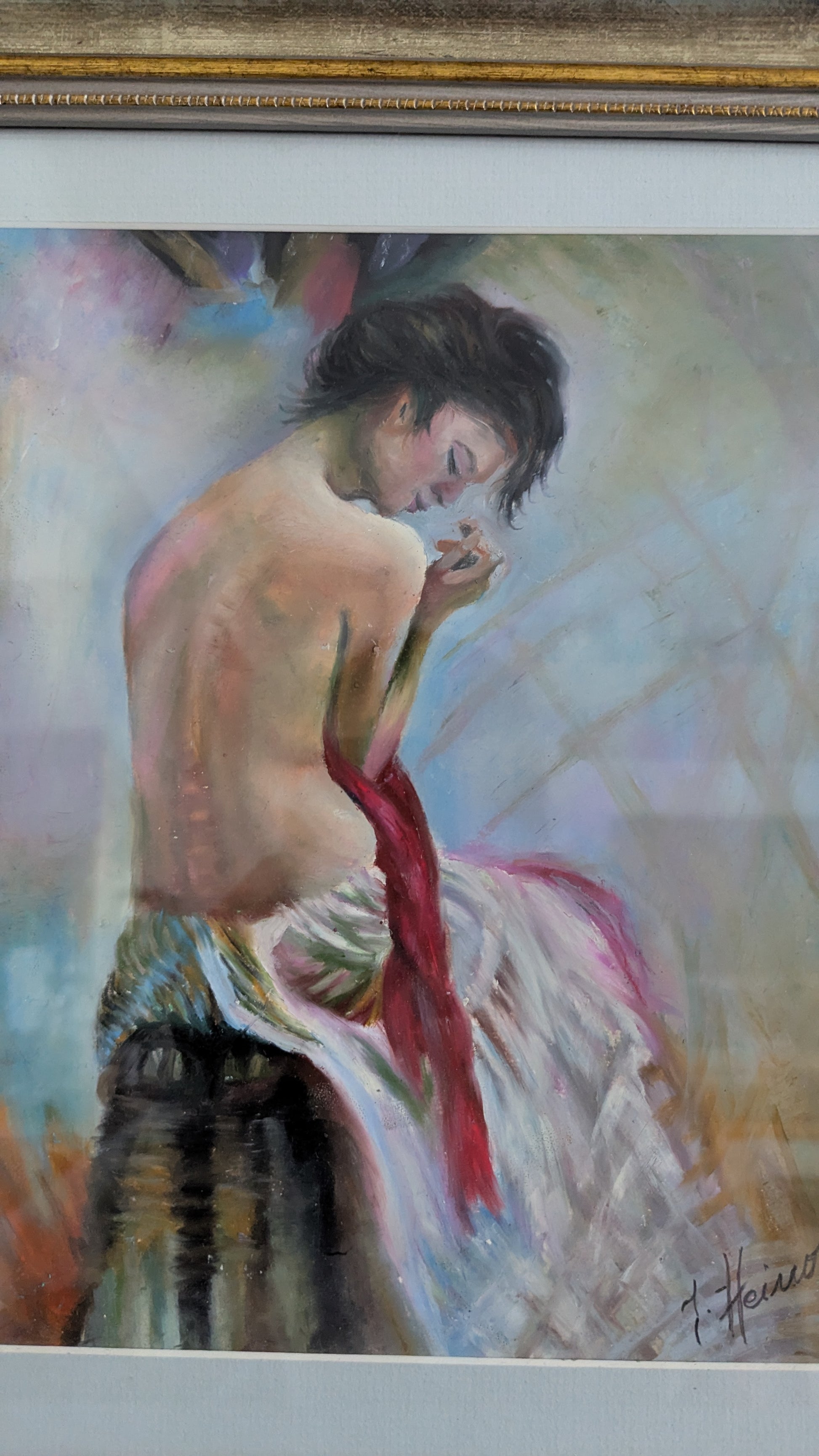 Jukka Heinon signeeraama pastellityö.