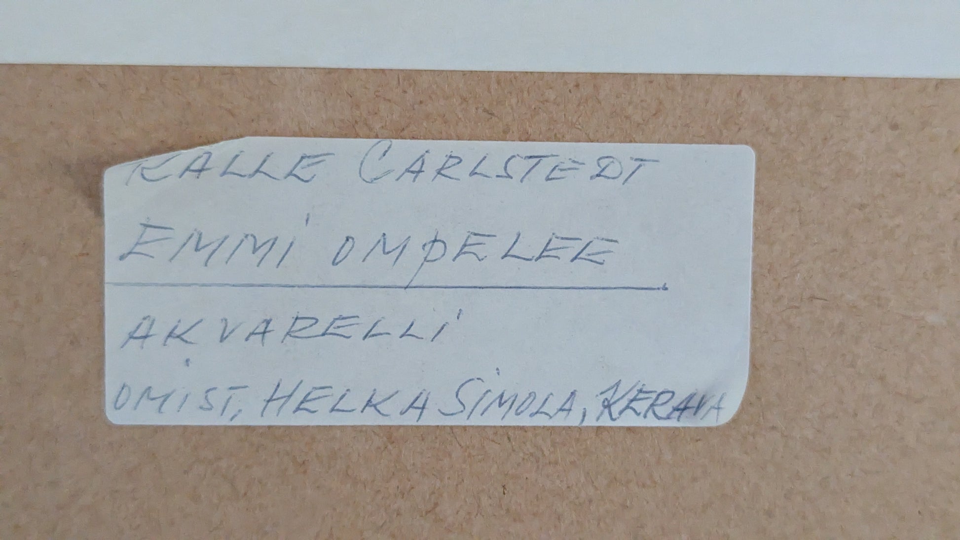 Kalle Carlstedt Emmi Ompelee niminen akvarellityö.