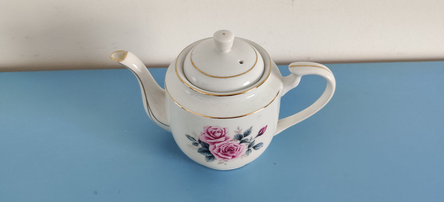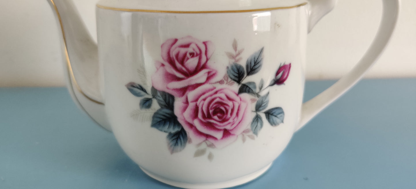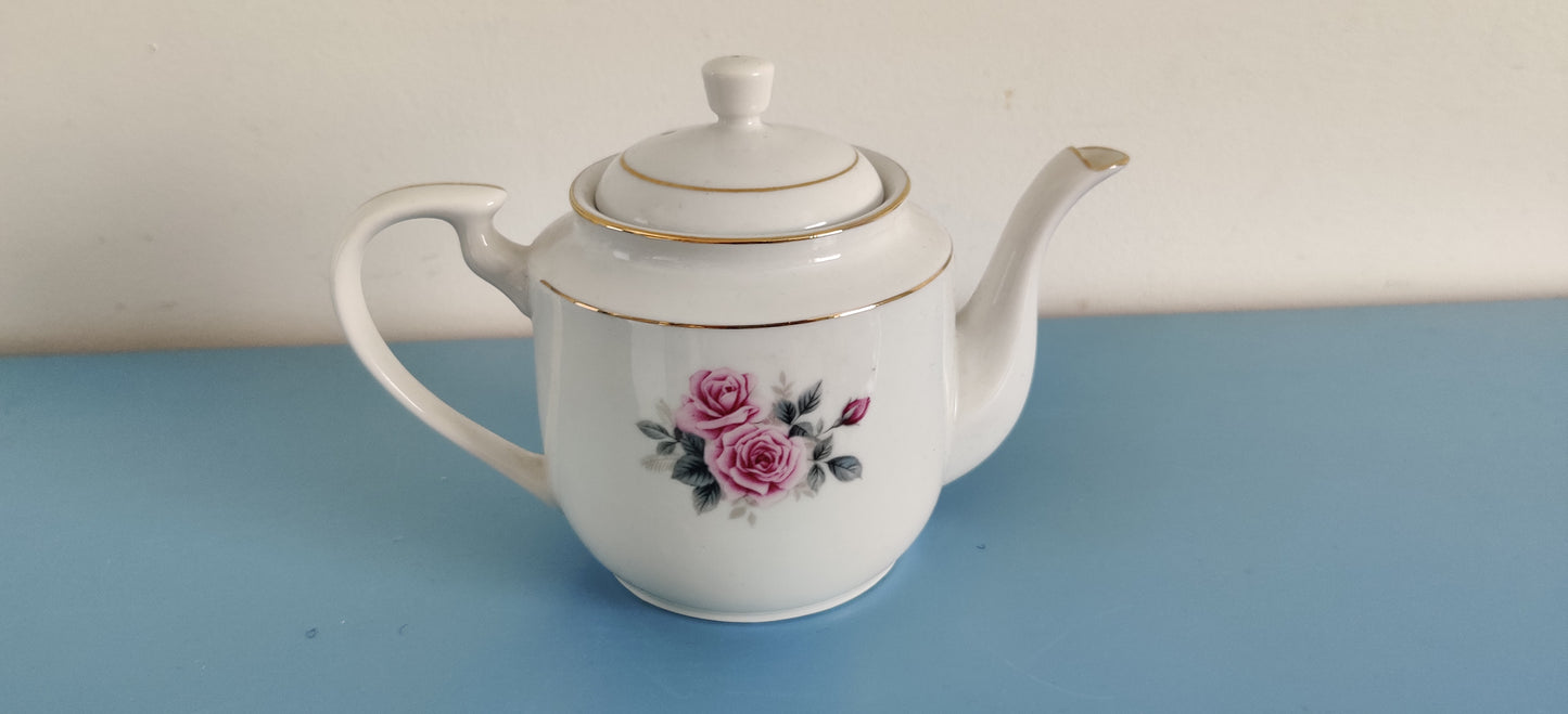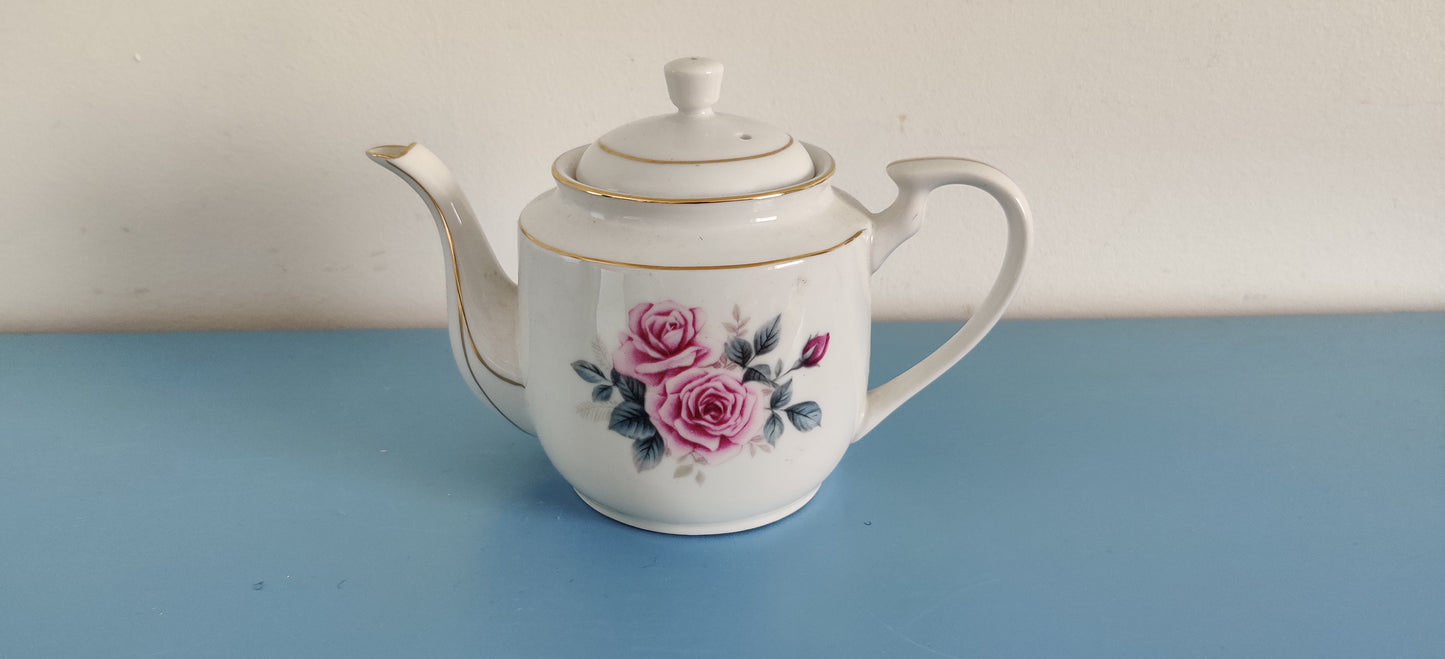 Kiinalainen Ruusukoristeltu Posliini Teekannu