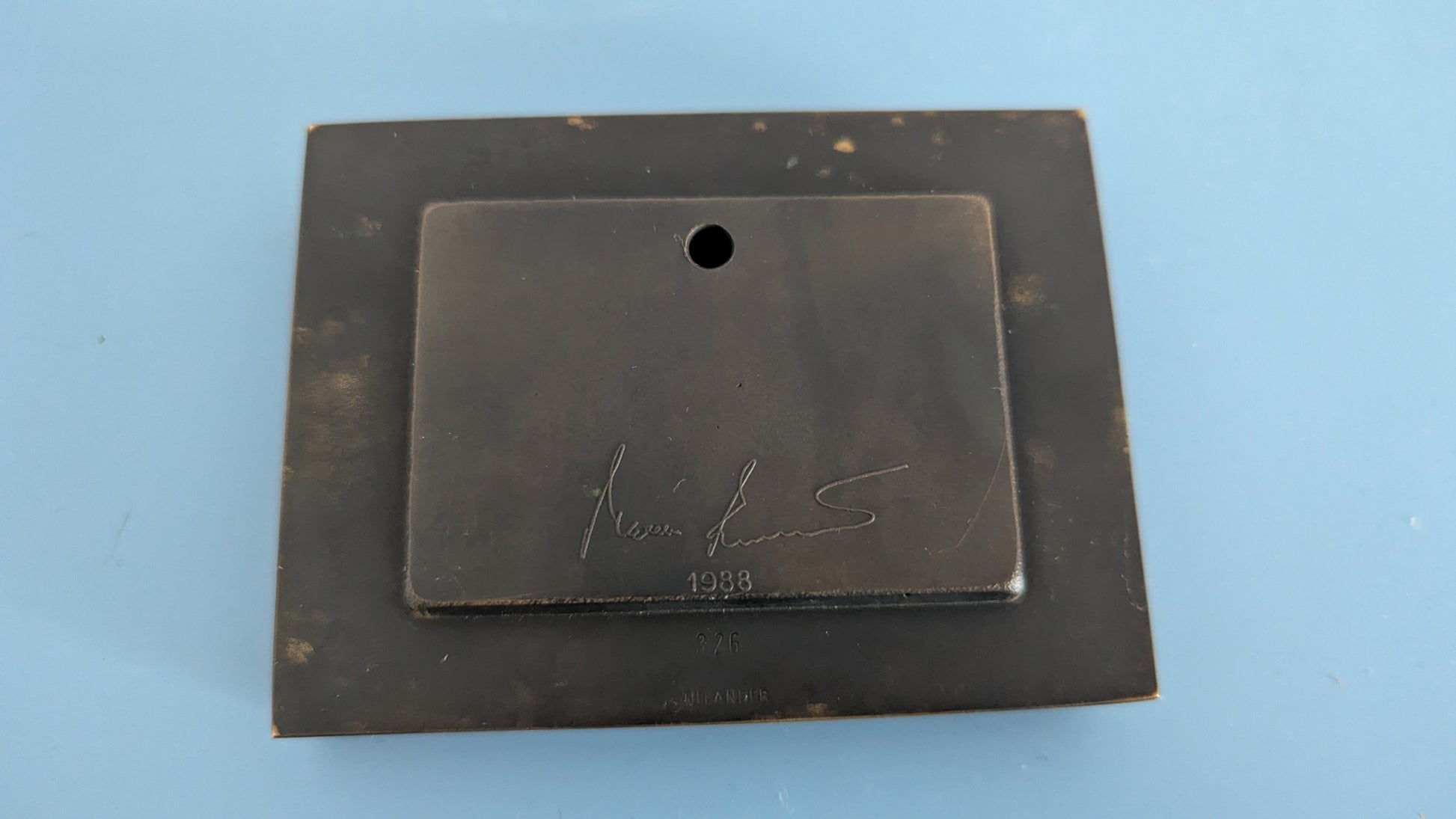 Ilmeisesti varainkeruuta varten tehty reliefi / mitali. Jokainen mitali numeroitu. Tämä on numero 326. Alkuperäisessä puulaatikossa.
