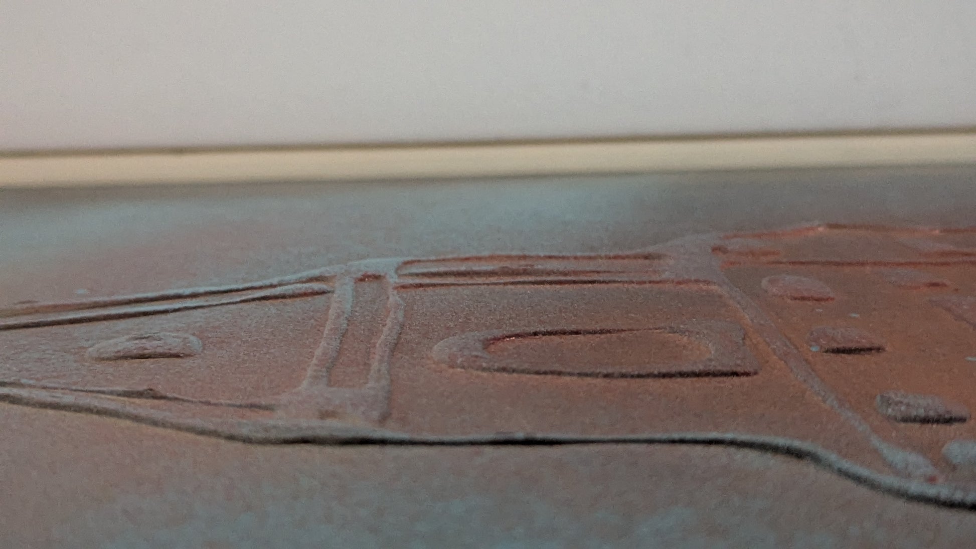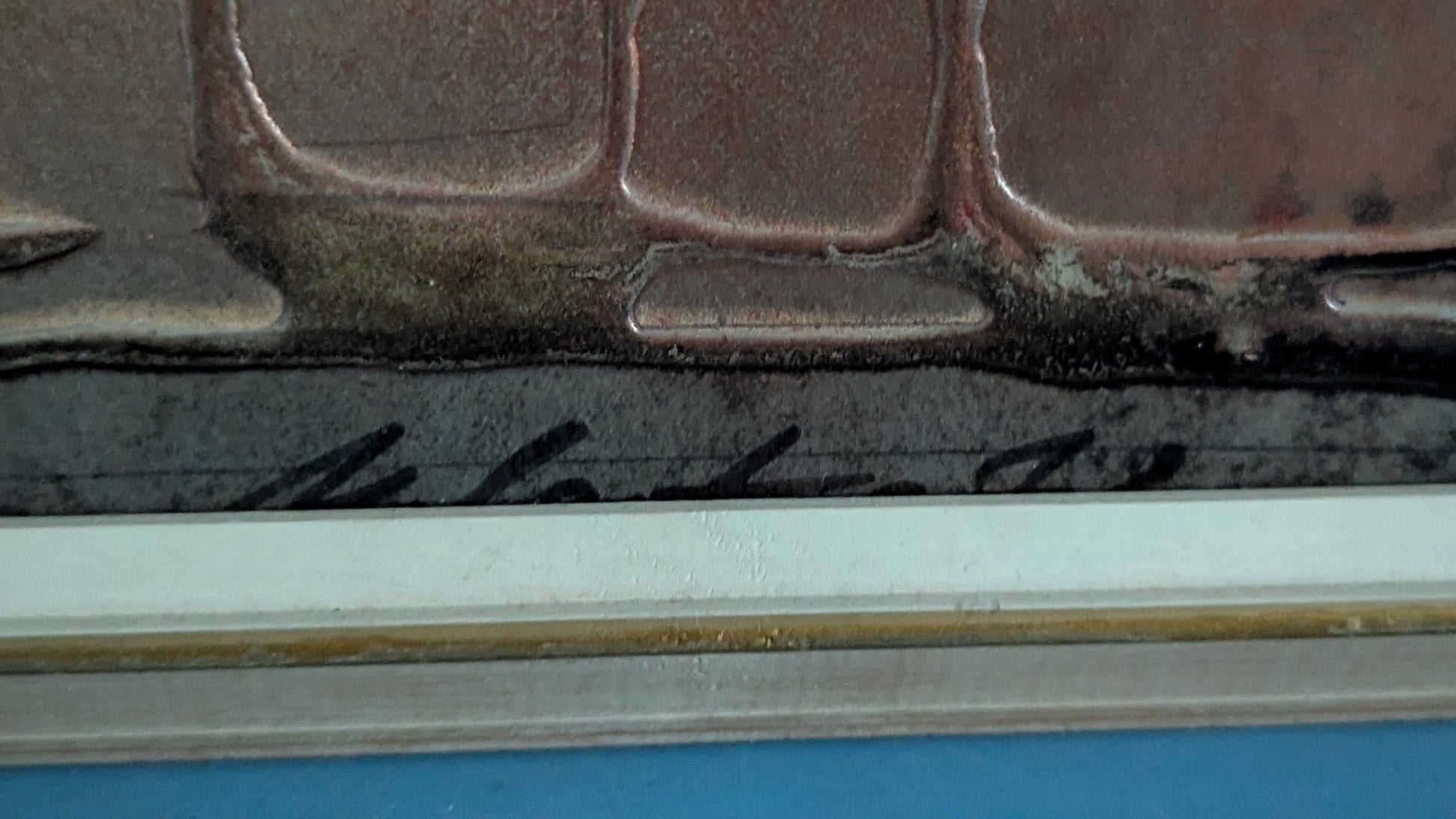 Signeerattu teos ilmeisesti vuodelta 1971. Signeeraus ja vuosiluku jäävät suurelta osin kehyksen alle.