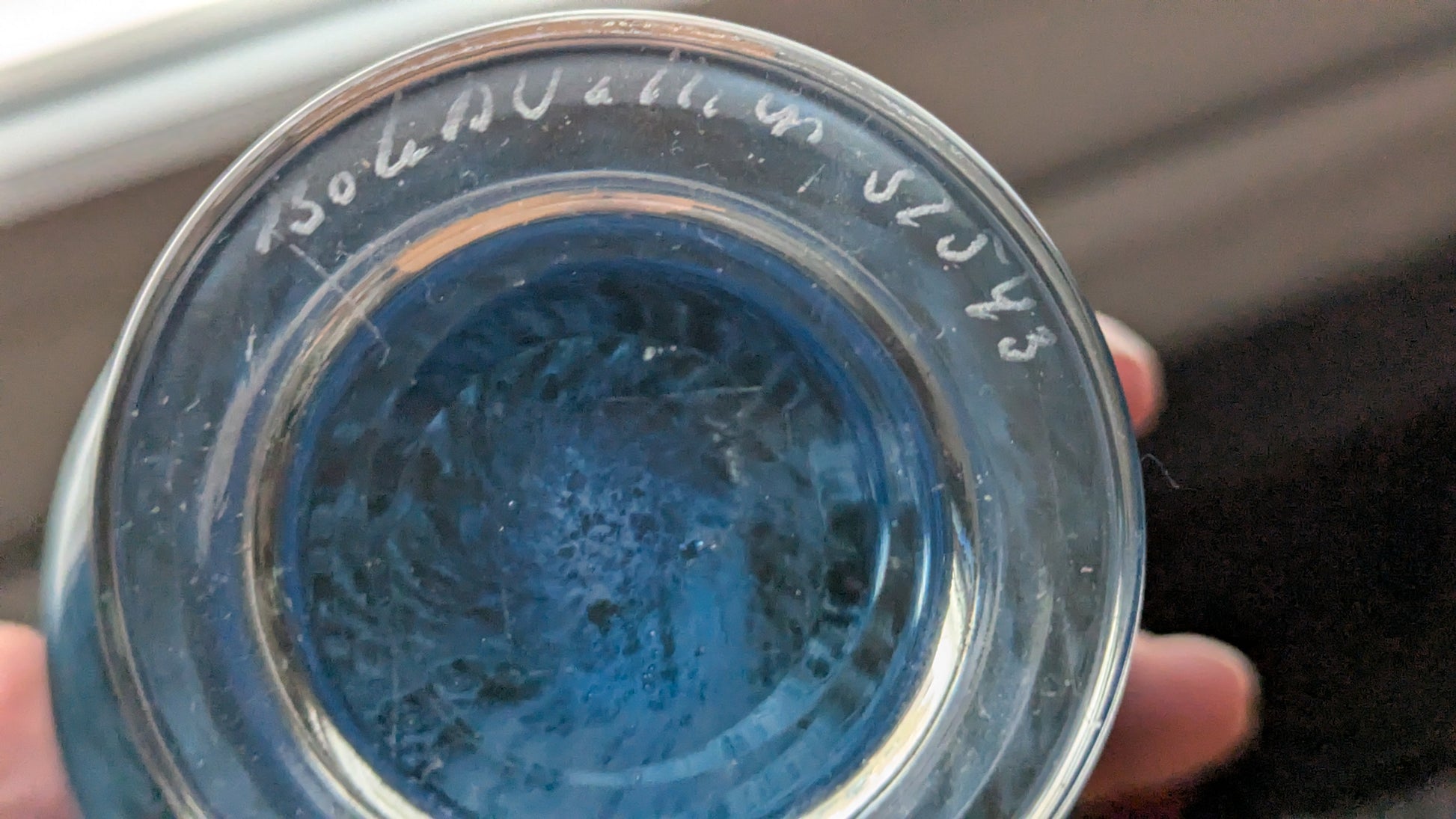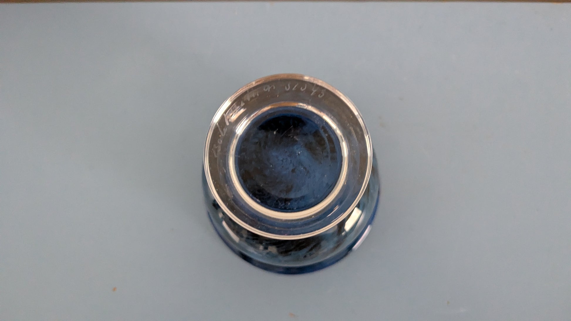 Ei iskemiä tai halkeamia, Pohjalla minimaalista naarmua joka näkyy valoa vasten.