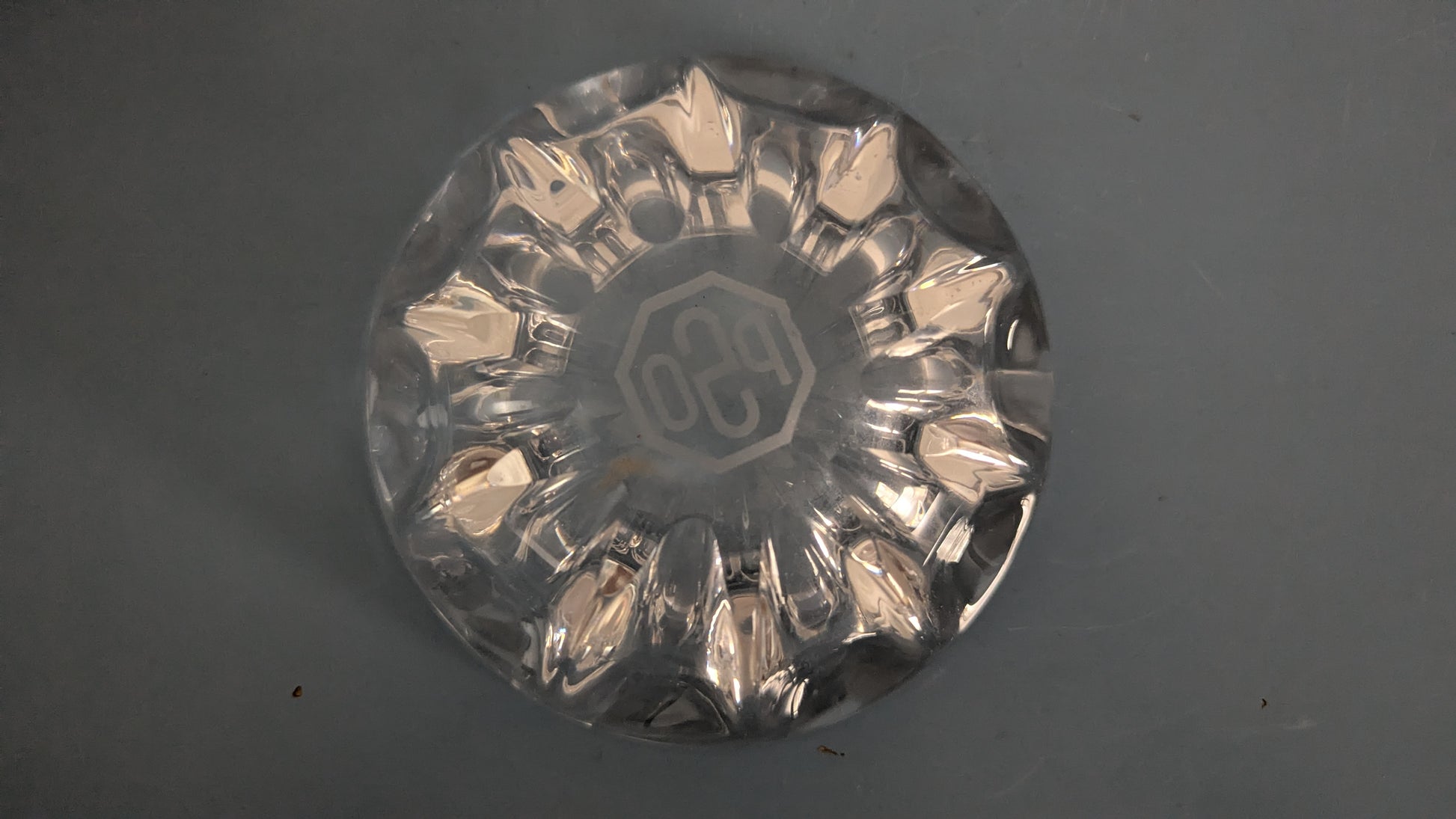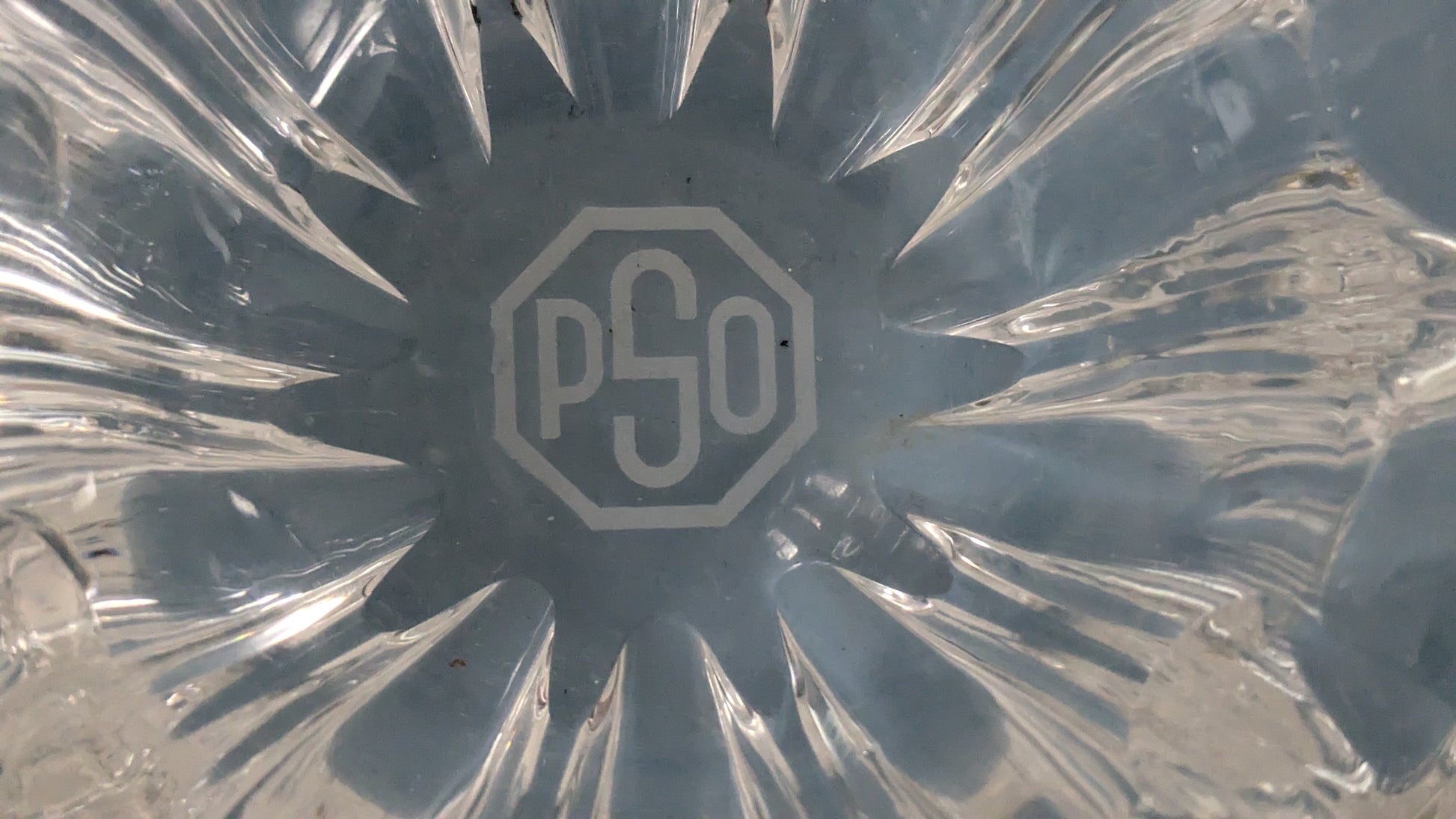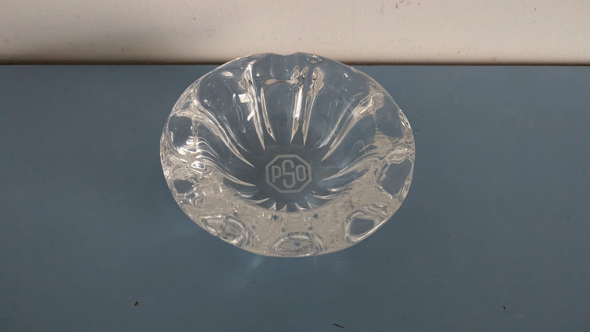 Kristallinen Tuhkakuppi / Tuhka-astia (Pohjoismainen Sähkö Oy eli PSO Logolla)