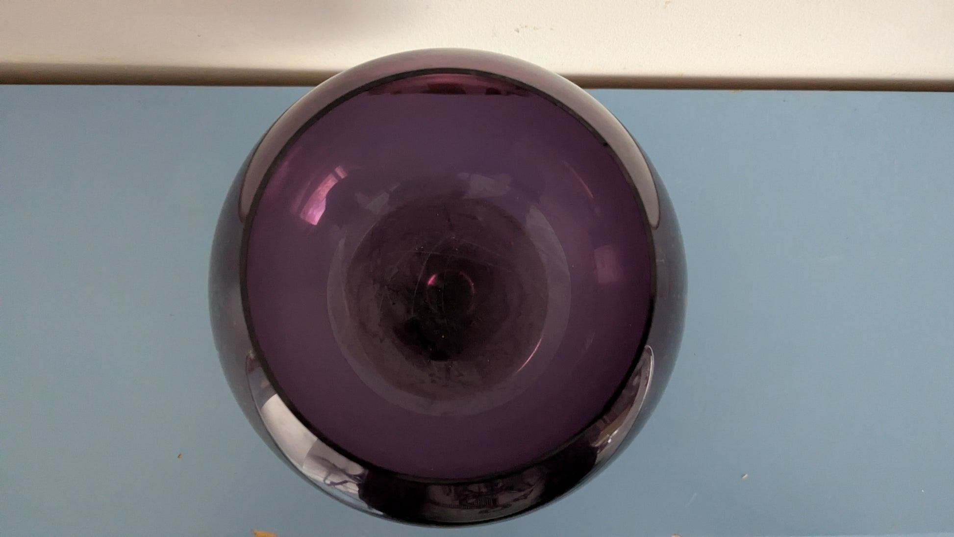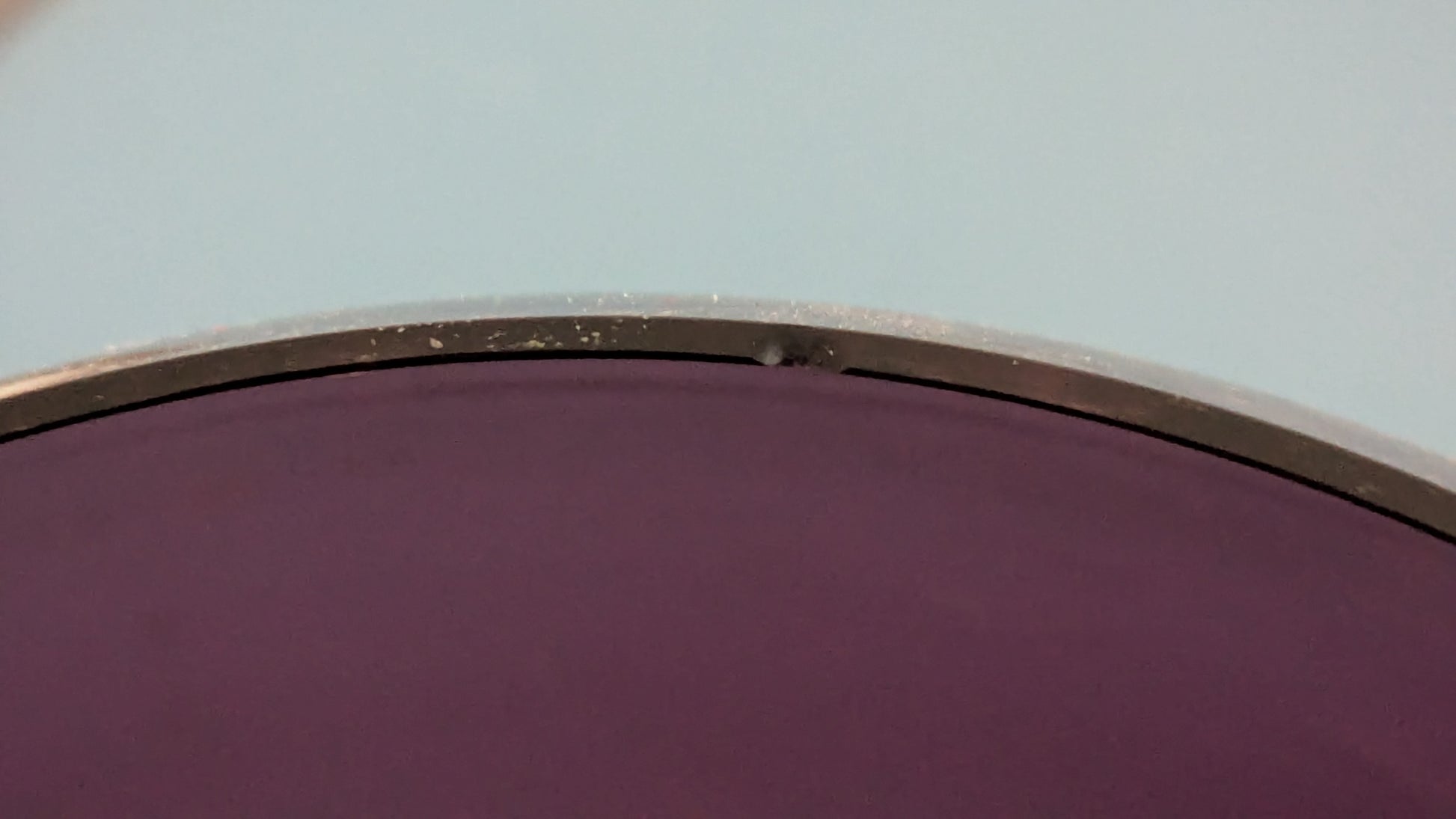Ei halkeamia. Vähäistä käyttökulumaa. Yläreunassa yksi 3mm iskemä, mikä näkyy viimeisessä kuvassa.