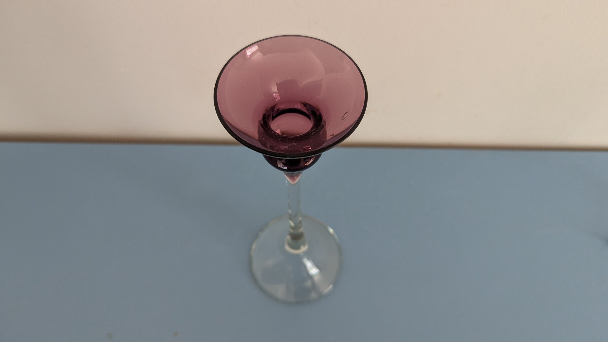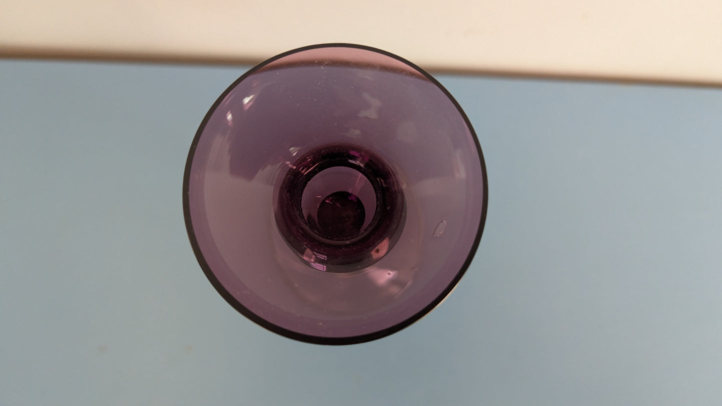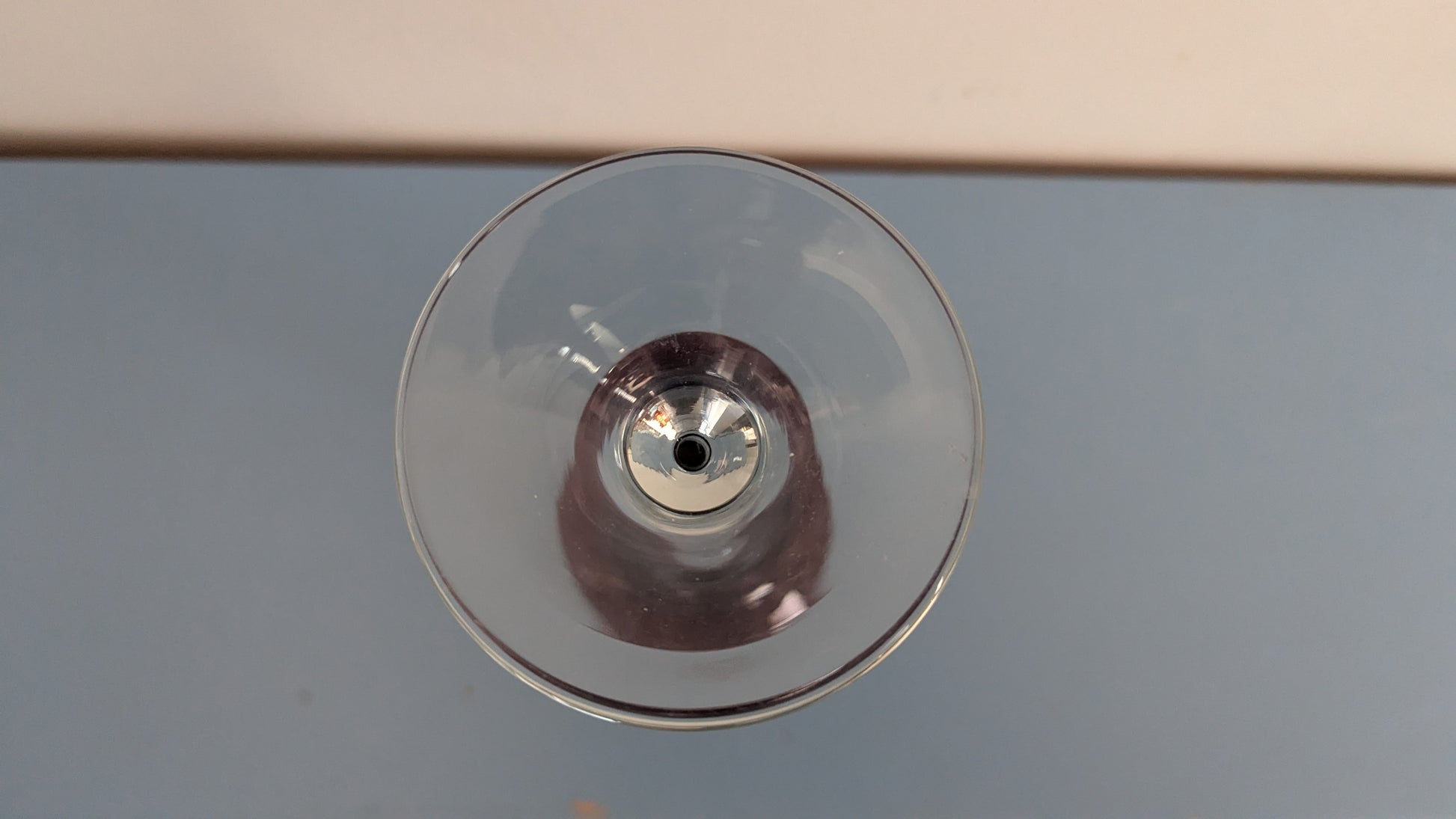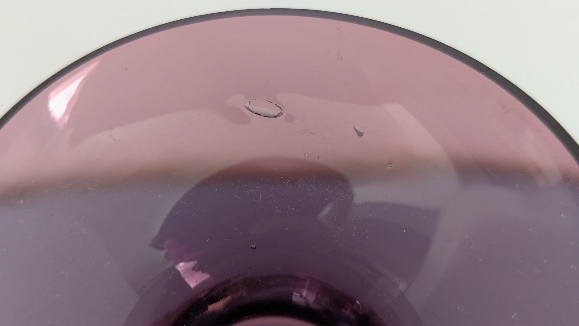 Ei iskemiä, halkeamia tai naarmuja mutta yläosaan jäänyt yksi noin 4mm kokoinen ilmakupla joka puhjennut. Näkyy viimeisessä kuvassa.
