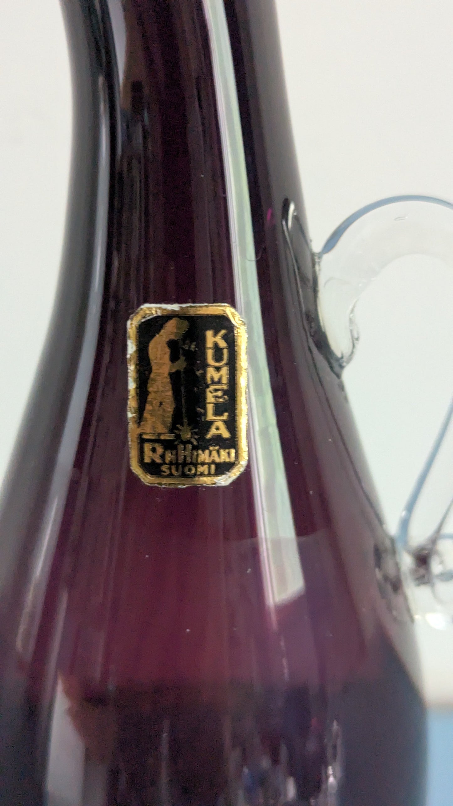 Harvinaisempi Kumelan valmistama esine. Väri on Kumelan tuttu lila ja kyljessä vielä Kumelan tarra mutta tätä ei löytynyt mistään eli suunnittelija tuntematon. Olisiko valmistettu 1950-1960-luvulla,