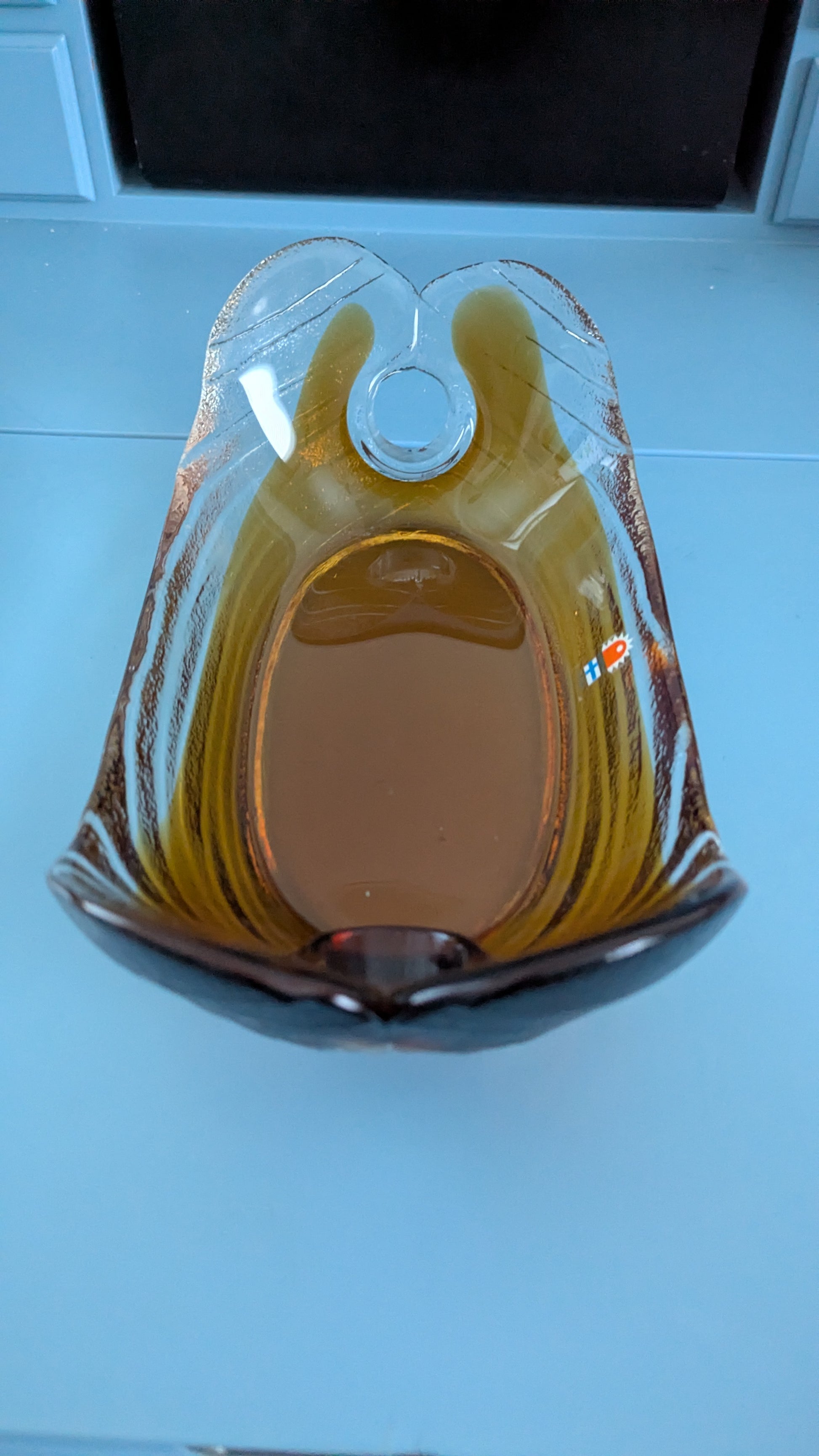 Humppila osti Kumelan 1976 ja esineitä tehtiin tämän jälkeen myös Humppilan tuotemerkin alla. Tässä paikalla vielä Kumelan tarra jota otettiin käyttöön jossain kohtaa oston jälkeen ja oli käytössä vielä ainakin 1980-luvun alkuvuosina. Tarra on muuten samanlainen kuin Humppilan mutta teksti Humppila korvattu Kumela tekstillä.