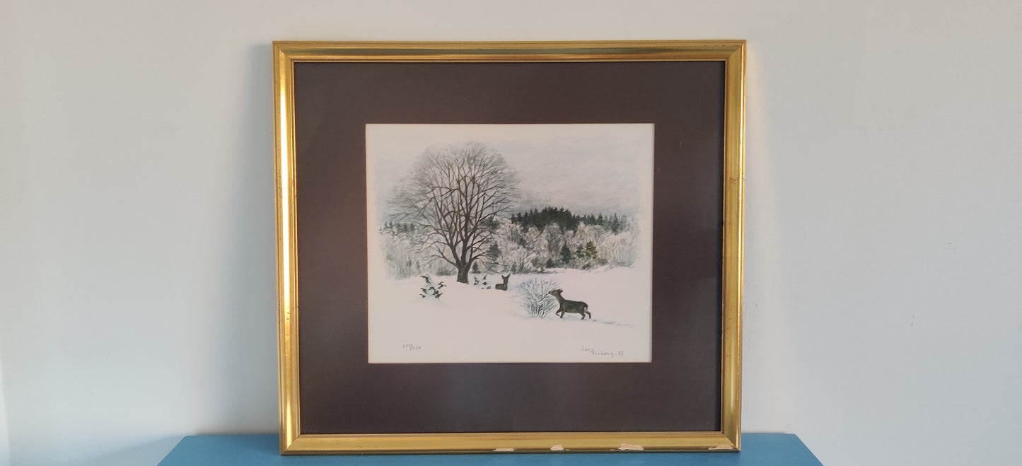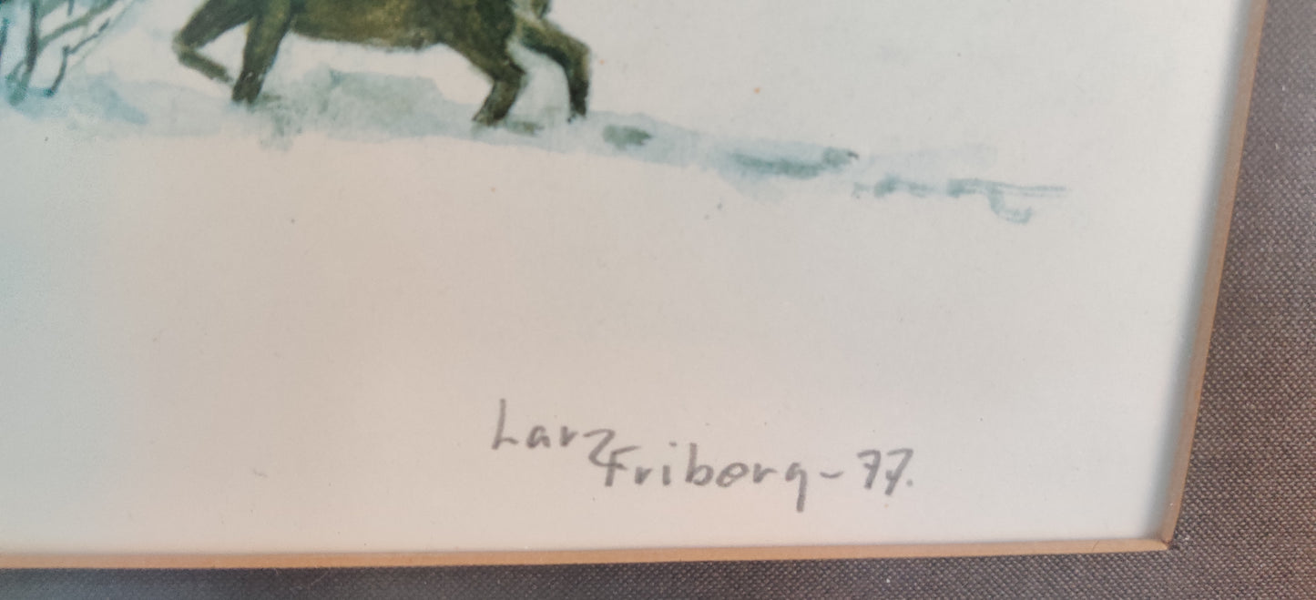 Larz Friberg - Signeerattu Peura Aiheinen Värilitografia (1977)