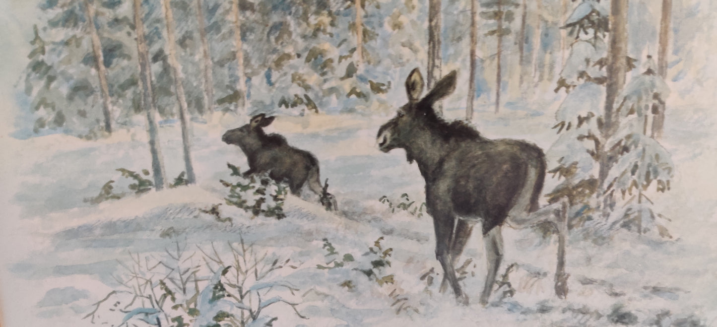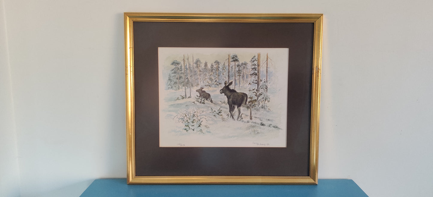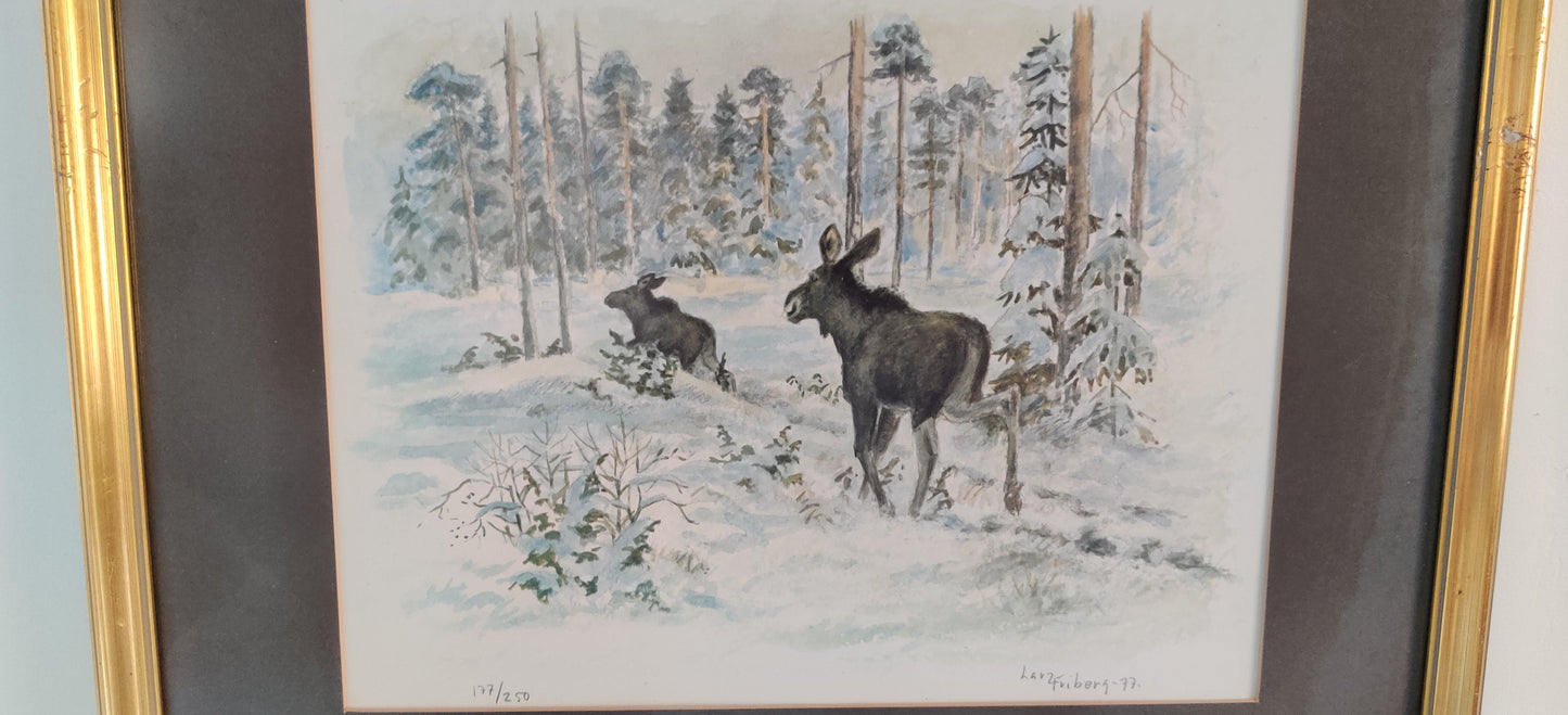 Larz Friberg - Signeerattu Hirvi Aiheinen Värilitografia (1977)