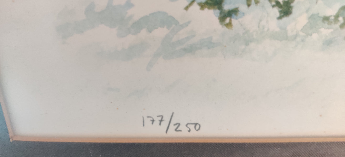 Teoksen alla numerointi 177/250 sekä signeeraus ja vuosiluku -77.