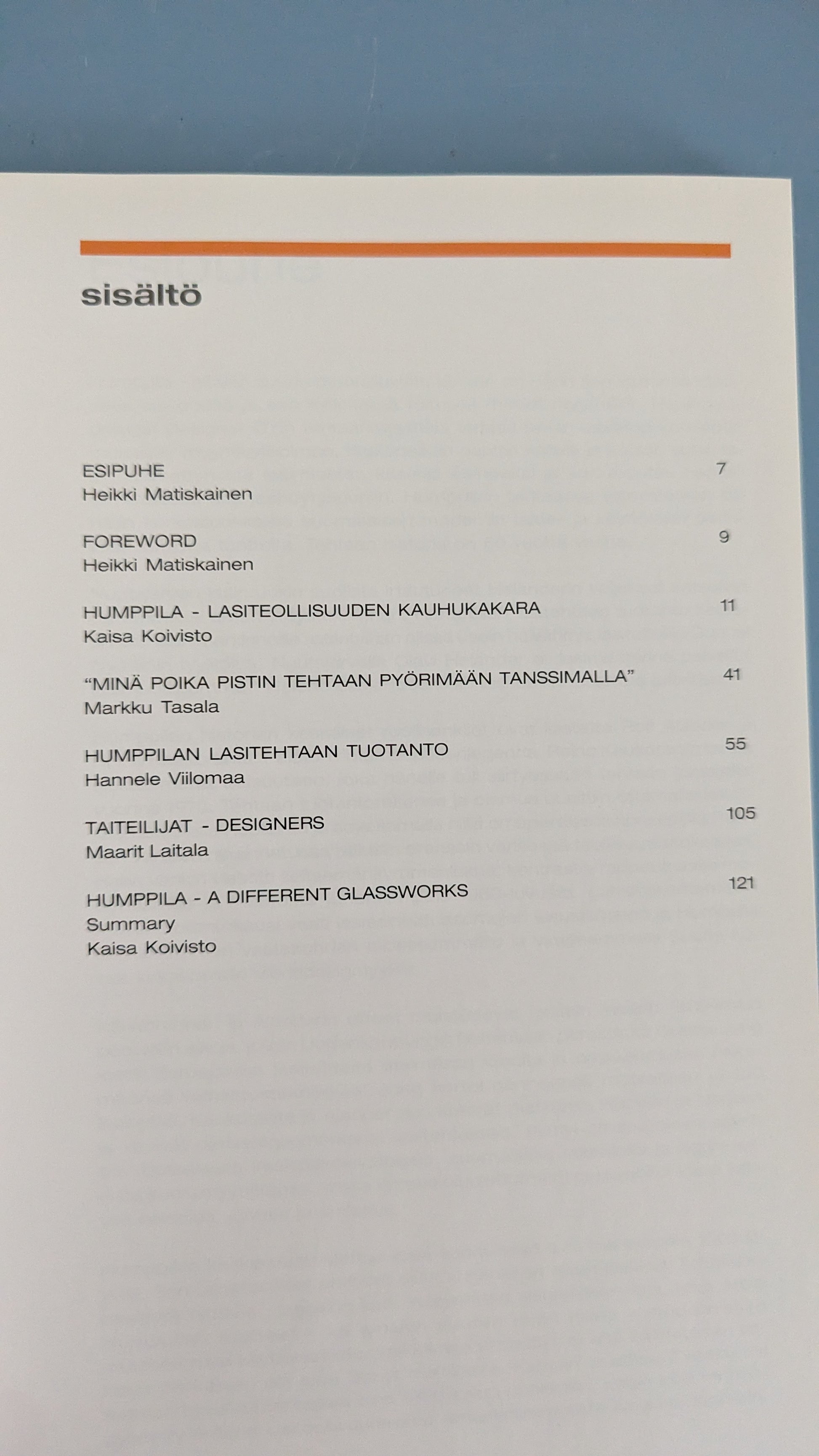 Suomen lasimuseon tutkimusjulkaisu vuodelta 2002. Kirjan tekstit muuten suomeksi mutta kuvatekstit myös englanniksi.