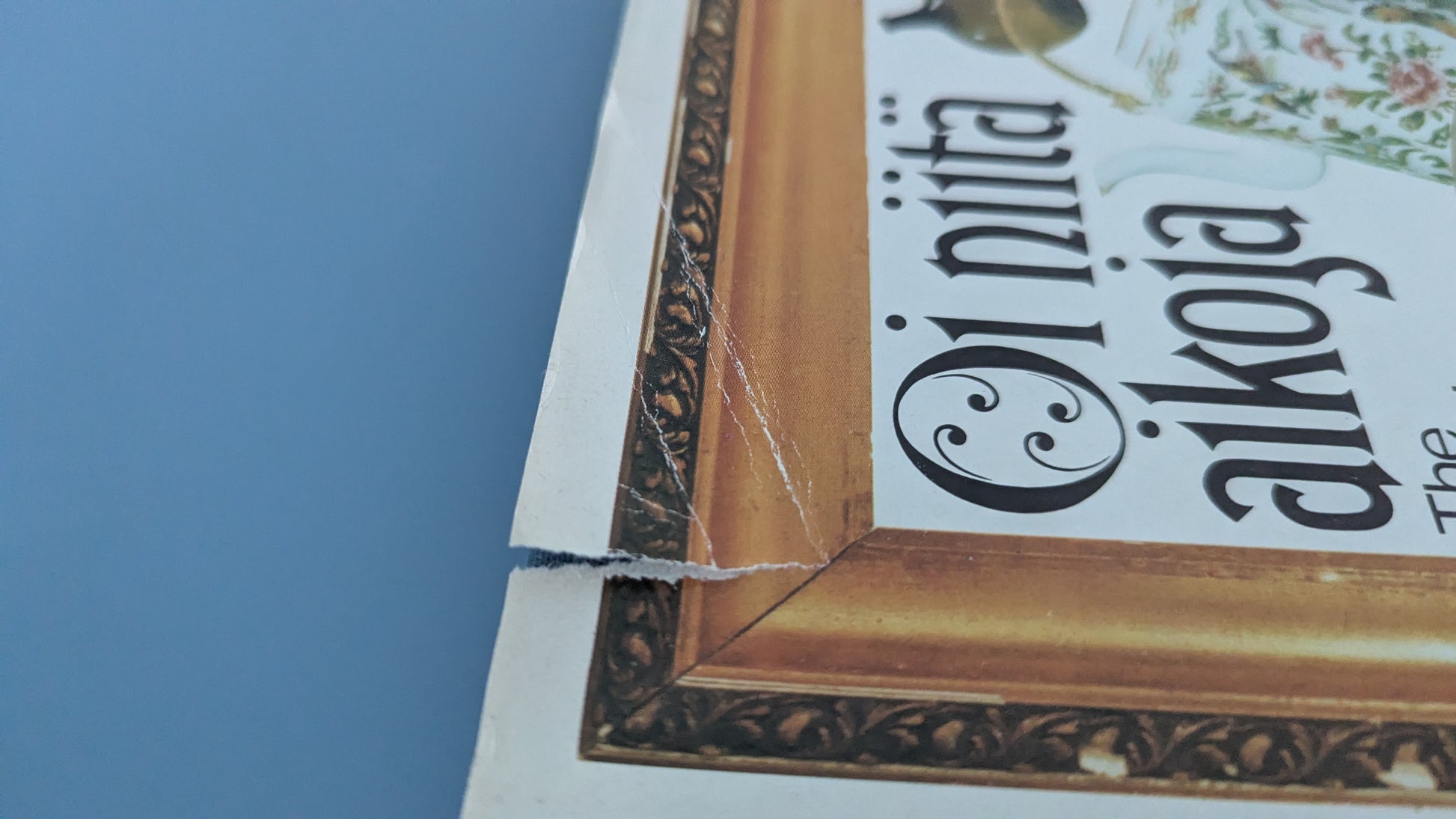 Paperikansissa pieni repeämä, mikä näkyy viimeisessä kuvassa. Muuten ei repeämiä tai taitoksia.