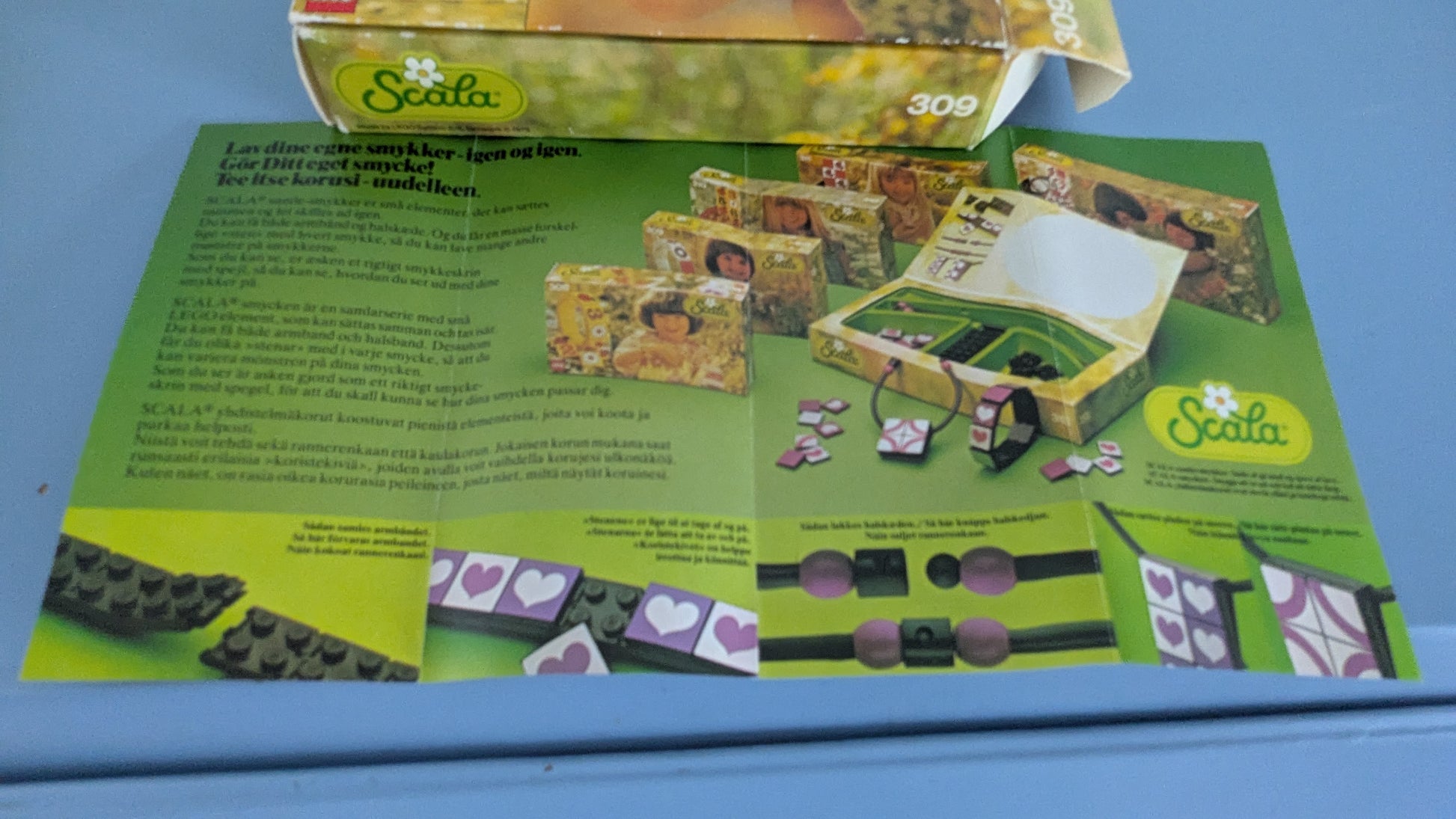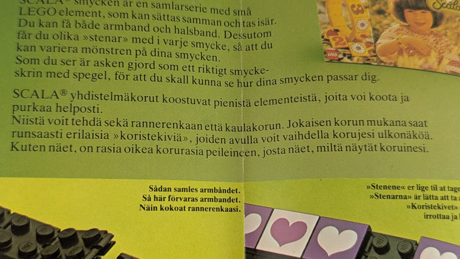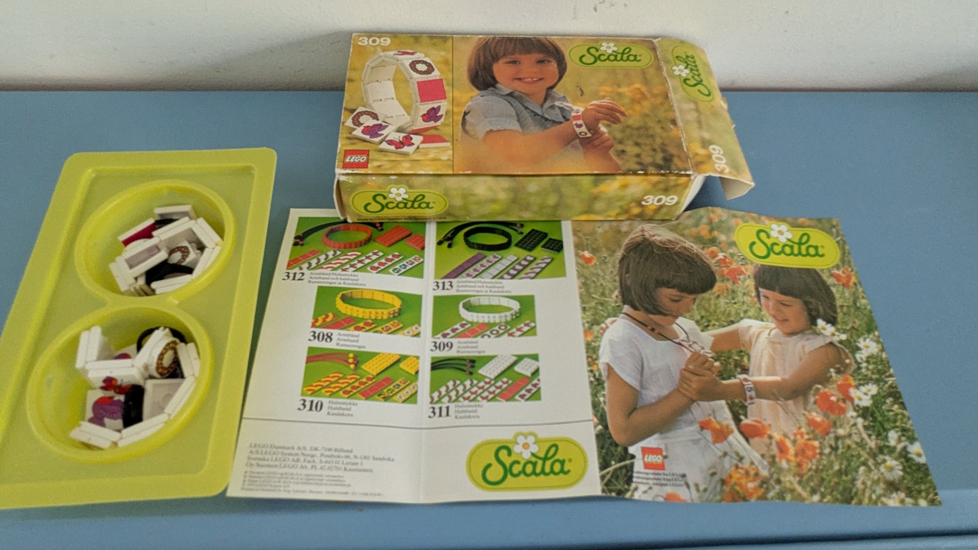 Alkuperäisessä paketissa oleva Scala sarjan koottava ja muunneltava rannerengas vuodelta 1979. Paketti sisältää 38 palaa. Mukana myös extra paloja, kuten kolme Lego sormusta, muista Scala sarjan paketeista. Ylimääräiset osat näkyvät viimeisen kuvan oikealla puolella. Mukana myös alkuperäisen paketin mukana tullut esite sarjan muista tuotteista.