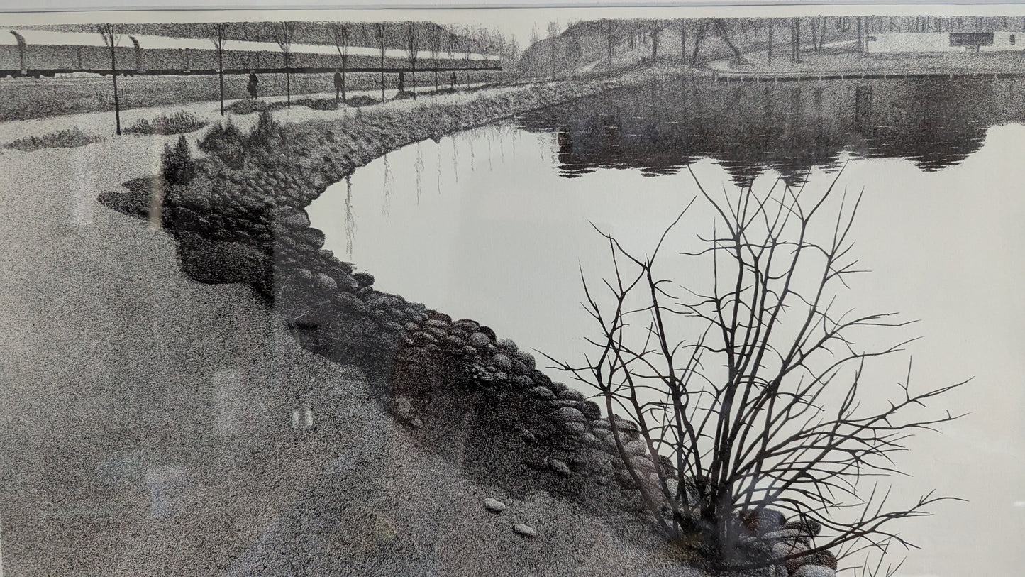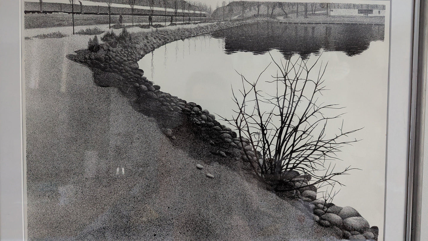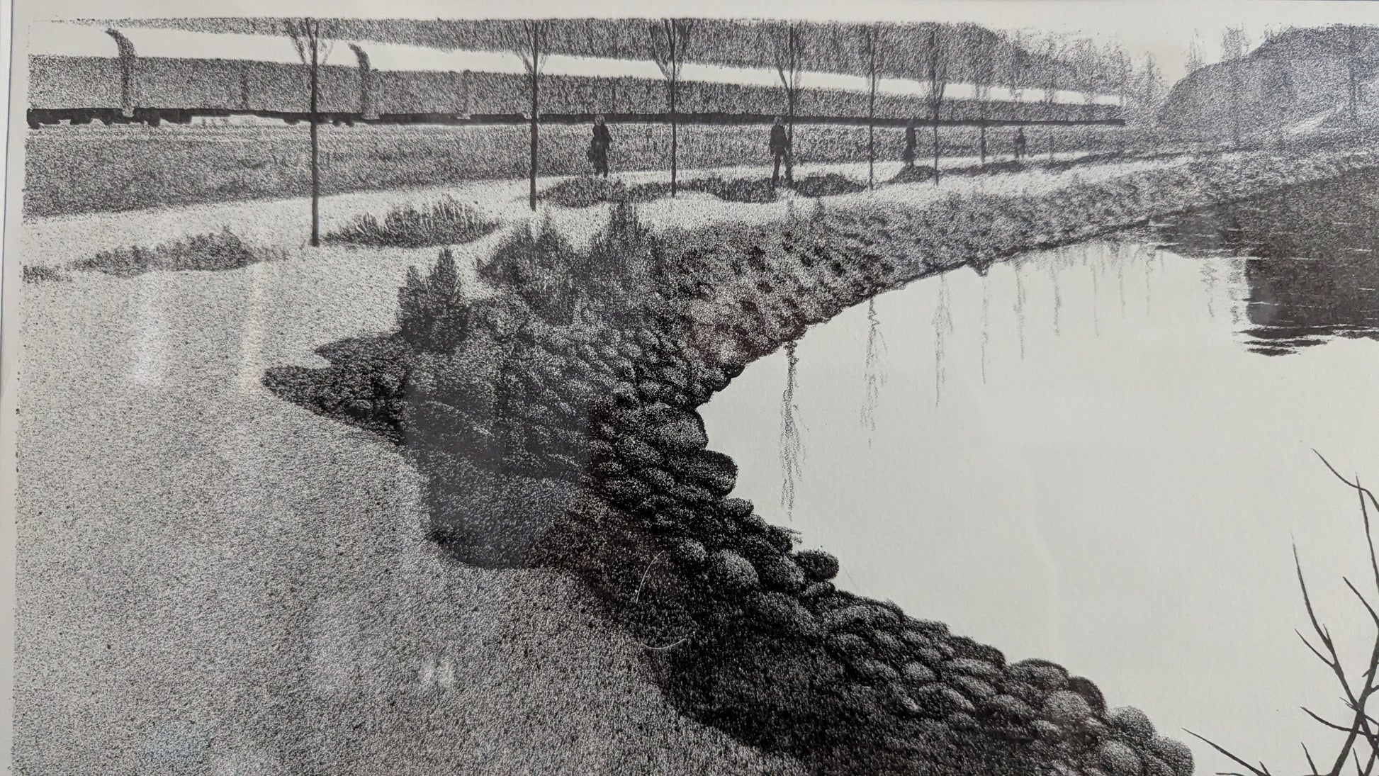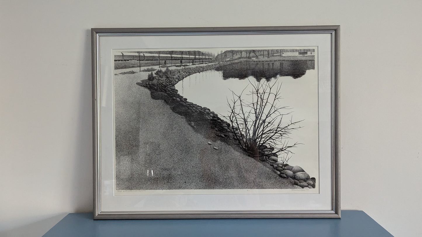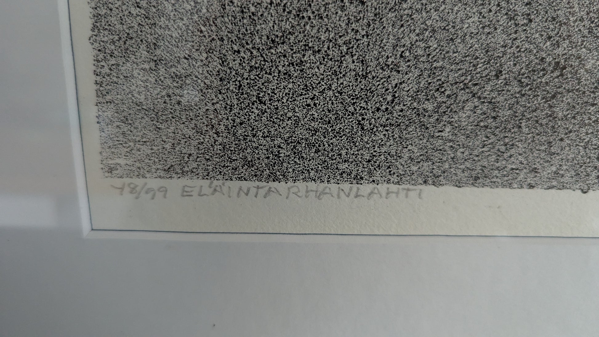 Leo Rannikon signeeraama Eläintarhanlahti niminen grafiikka vuodelta 1979.