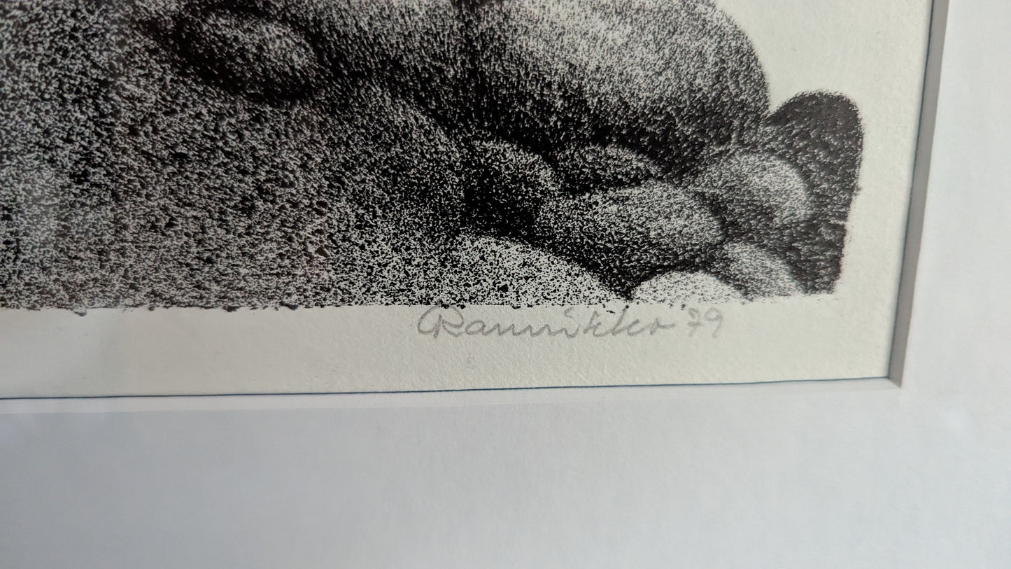 Teoksen alla numerointi 48/99, teoksen nimi, taiteilijan signeeraus, ja vuosiluku -79.