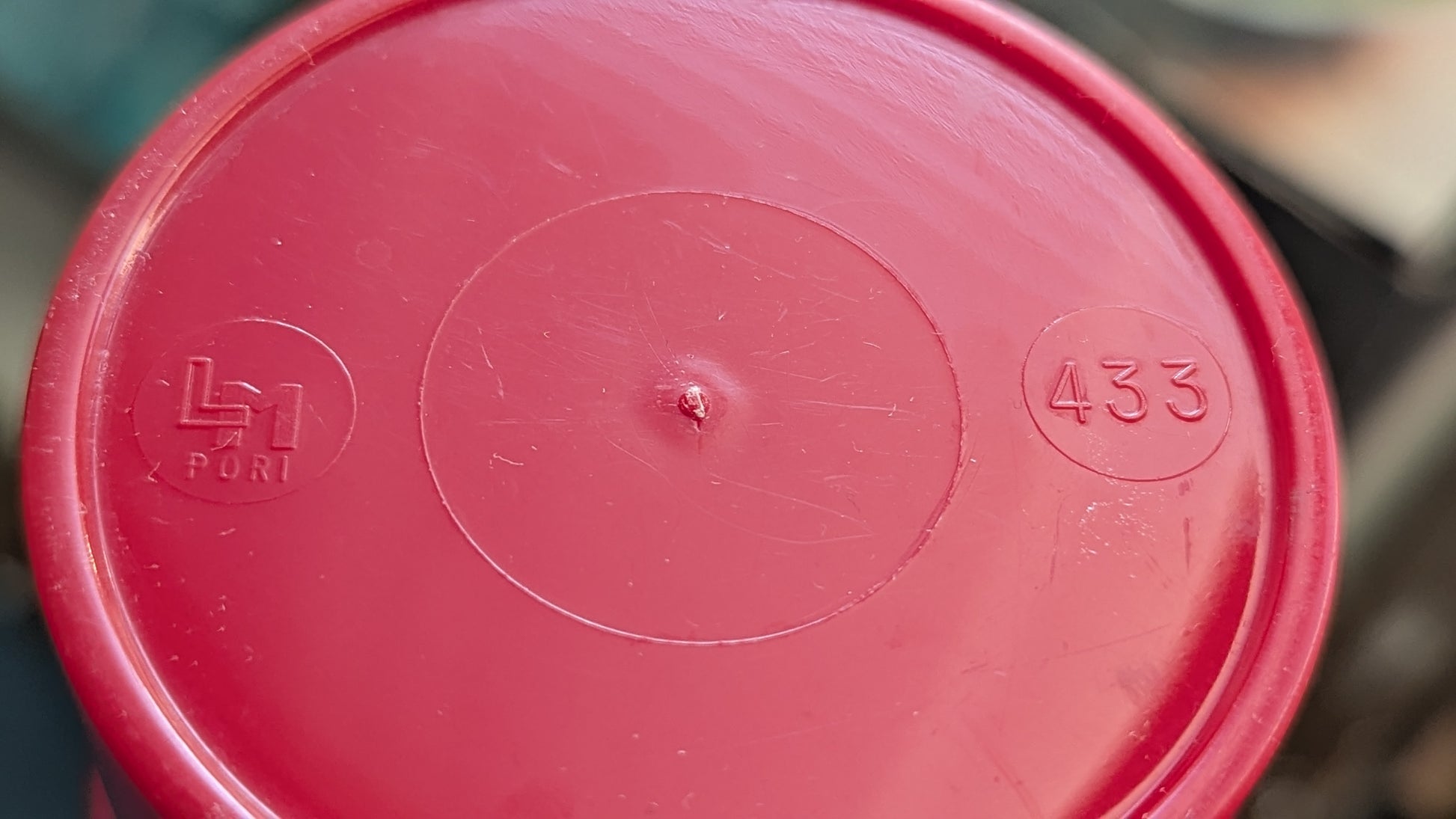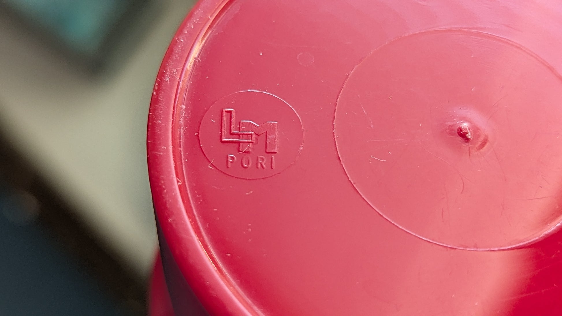Pohjassa LM Pori logo ja mallimerkintä 433. Kyseessä on vuonna 1955 Porin Niittymaalle perustettu Lanka ja Muovi niminen yritys.