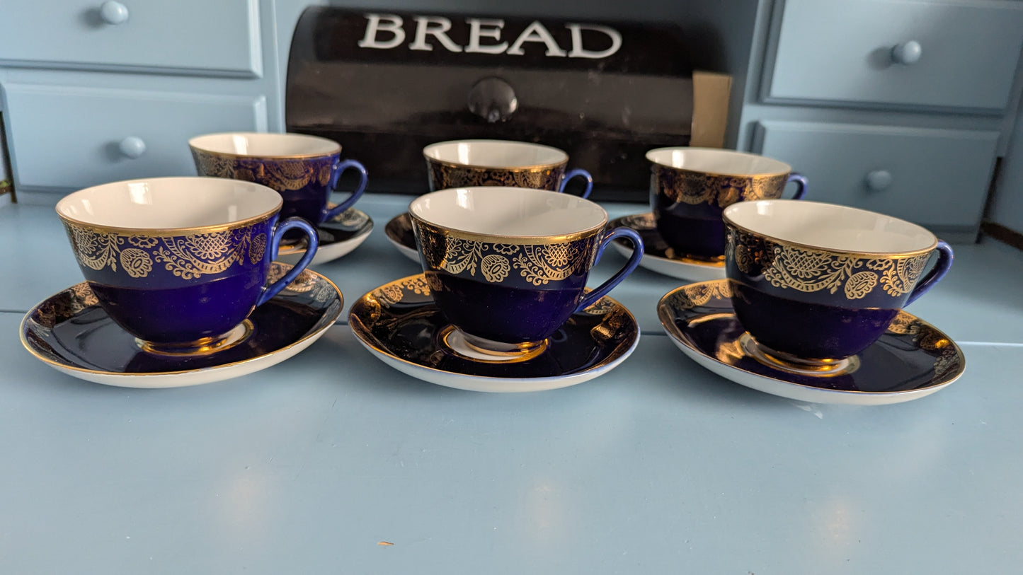 12-osainen Golden Frieze kahviastiasto / teeastiasto kuudelle hengelle.