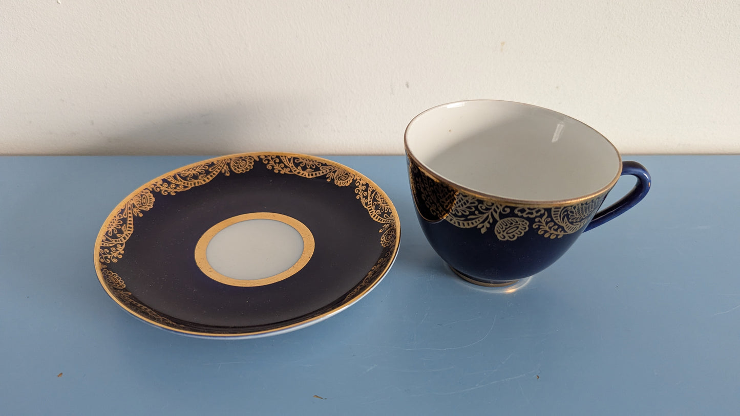 Ei iskemiä, halkeamia tai naarmuja. Kultaus täysin kunnossa.