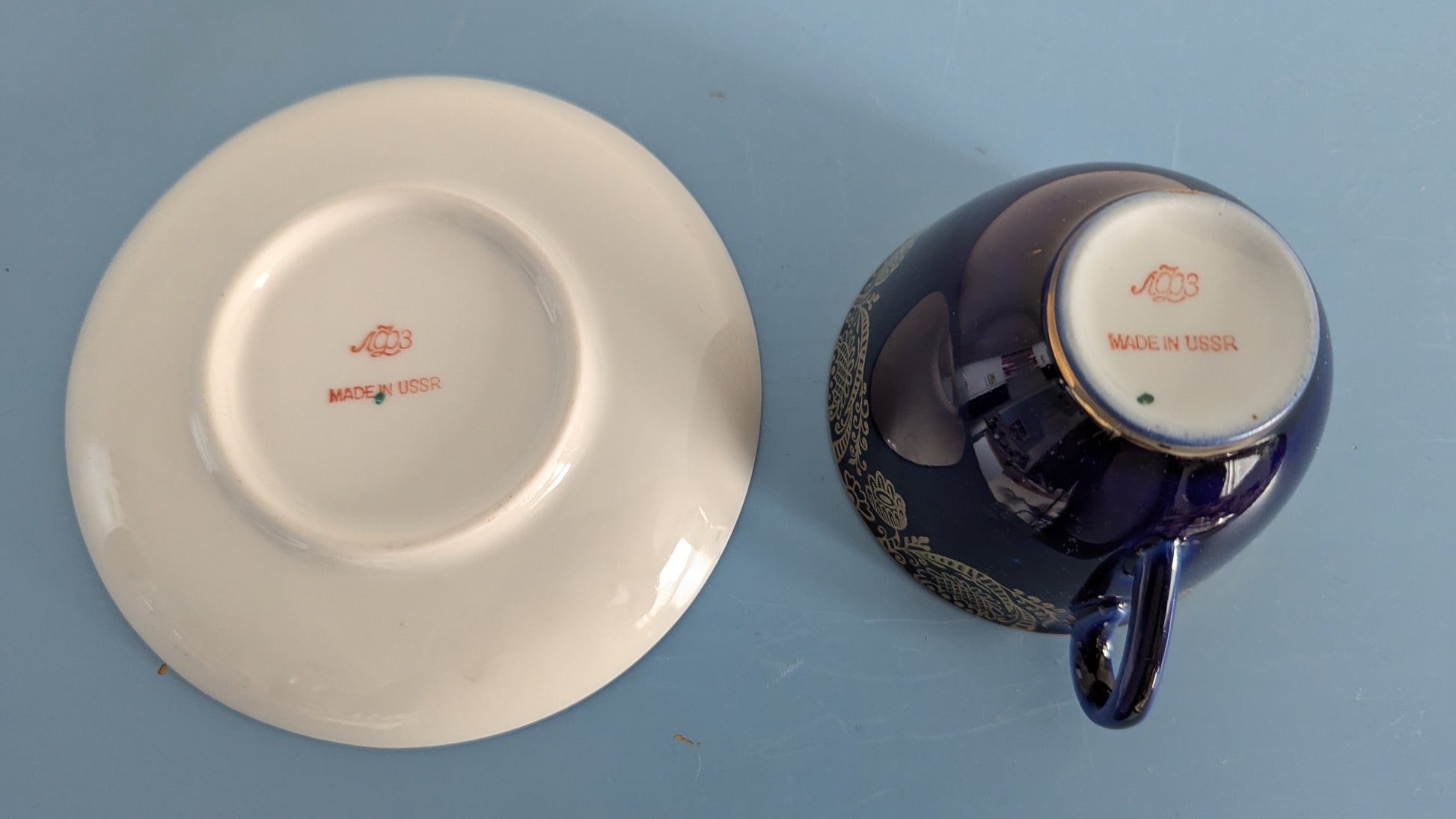 Englanninkielisillä sivuilla koriste kulkee nimellä Golden Frieze. Pohjassa punainen Lomonosovin leima. Punainen väri leimassa meinasi I-laadun tuotetta.