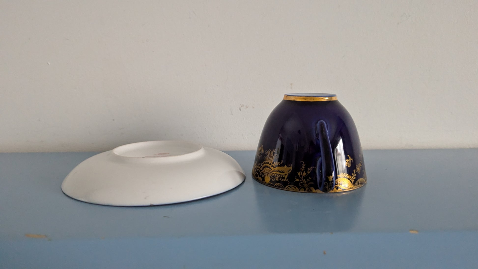 Ei iskemiä, halkeamia tai naarmuja. Kultaus täysin kunnossa.