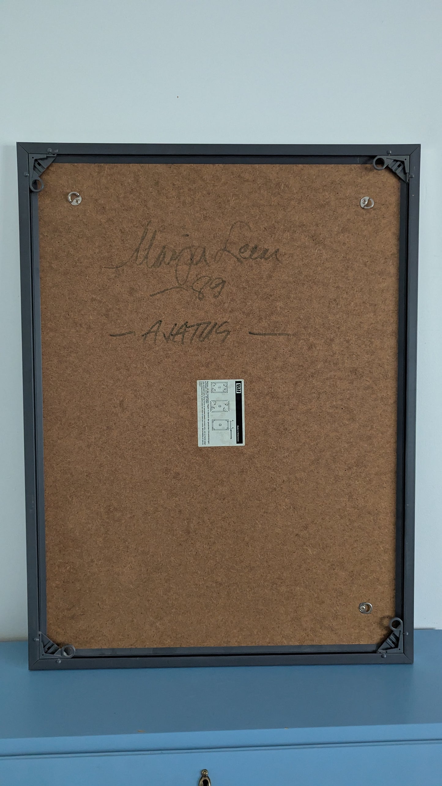 Marja Leenan signeeraama Ajatus niminen akvarellityö vuodelta 1989. Siitä ei tietoa kuka Marja Leena kyseessä.