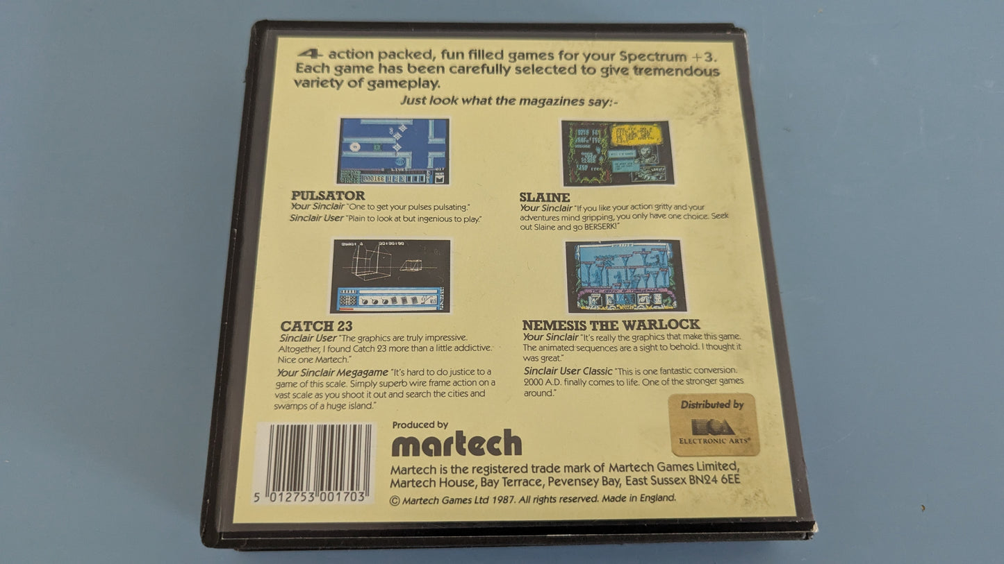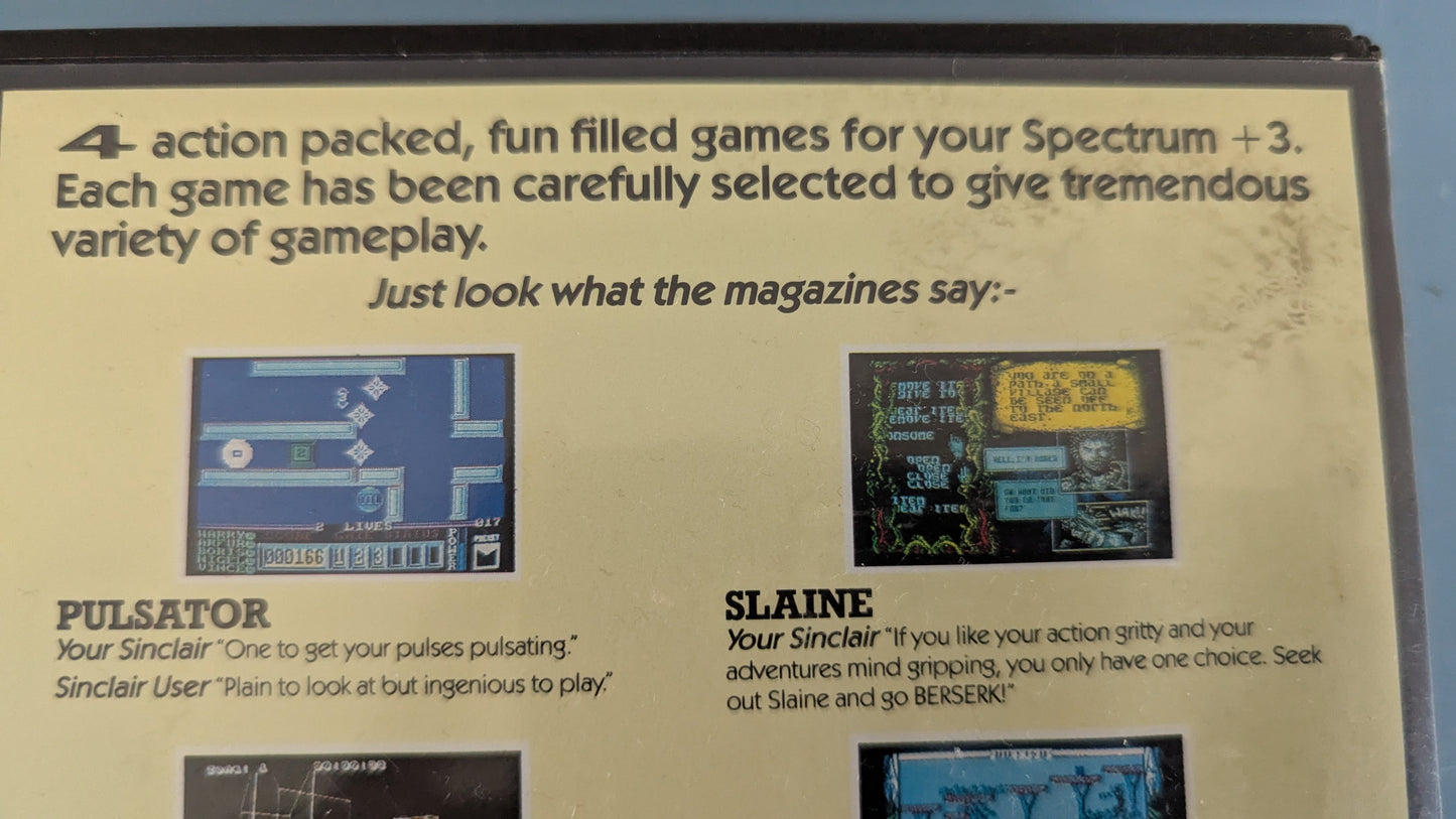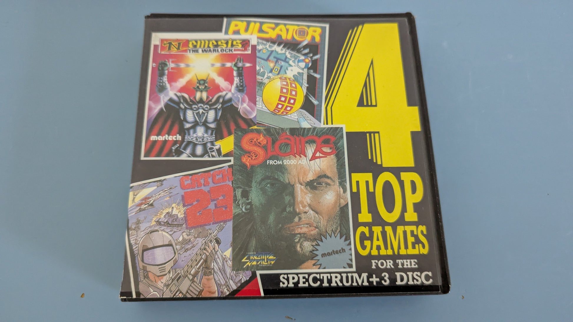 Spectrum 4 Top Games pelikokoelma. Sisältää pelit Nemesis The Warlock, Pulsator, Catch 23 ja Slaine From 2000 AD