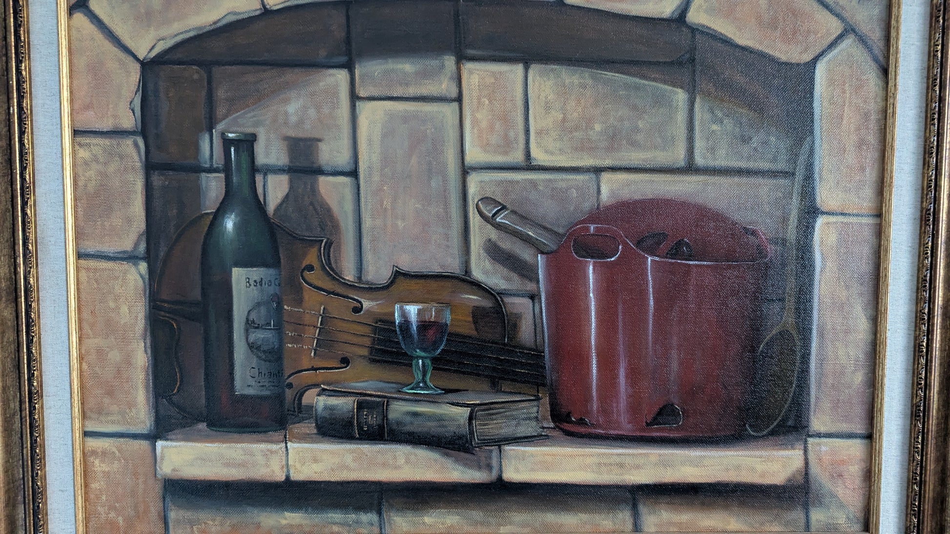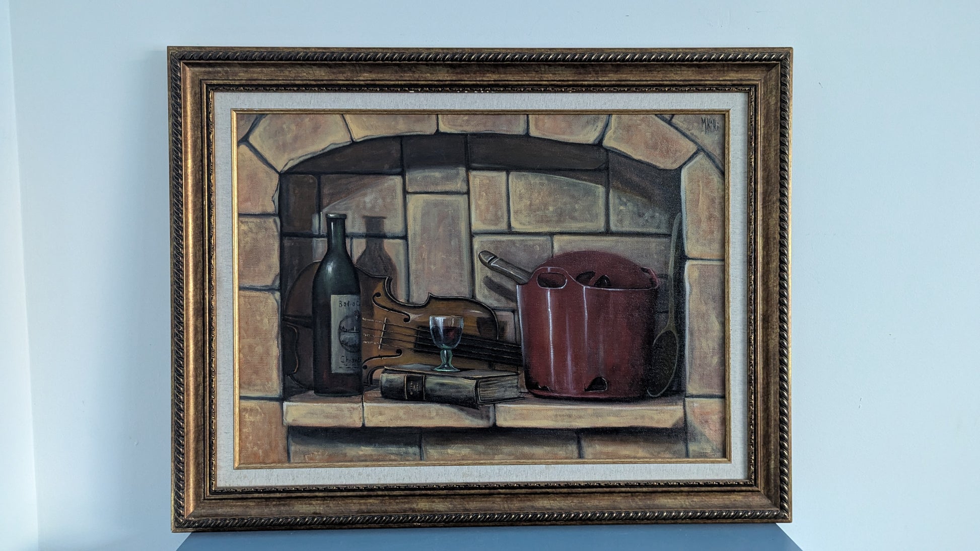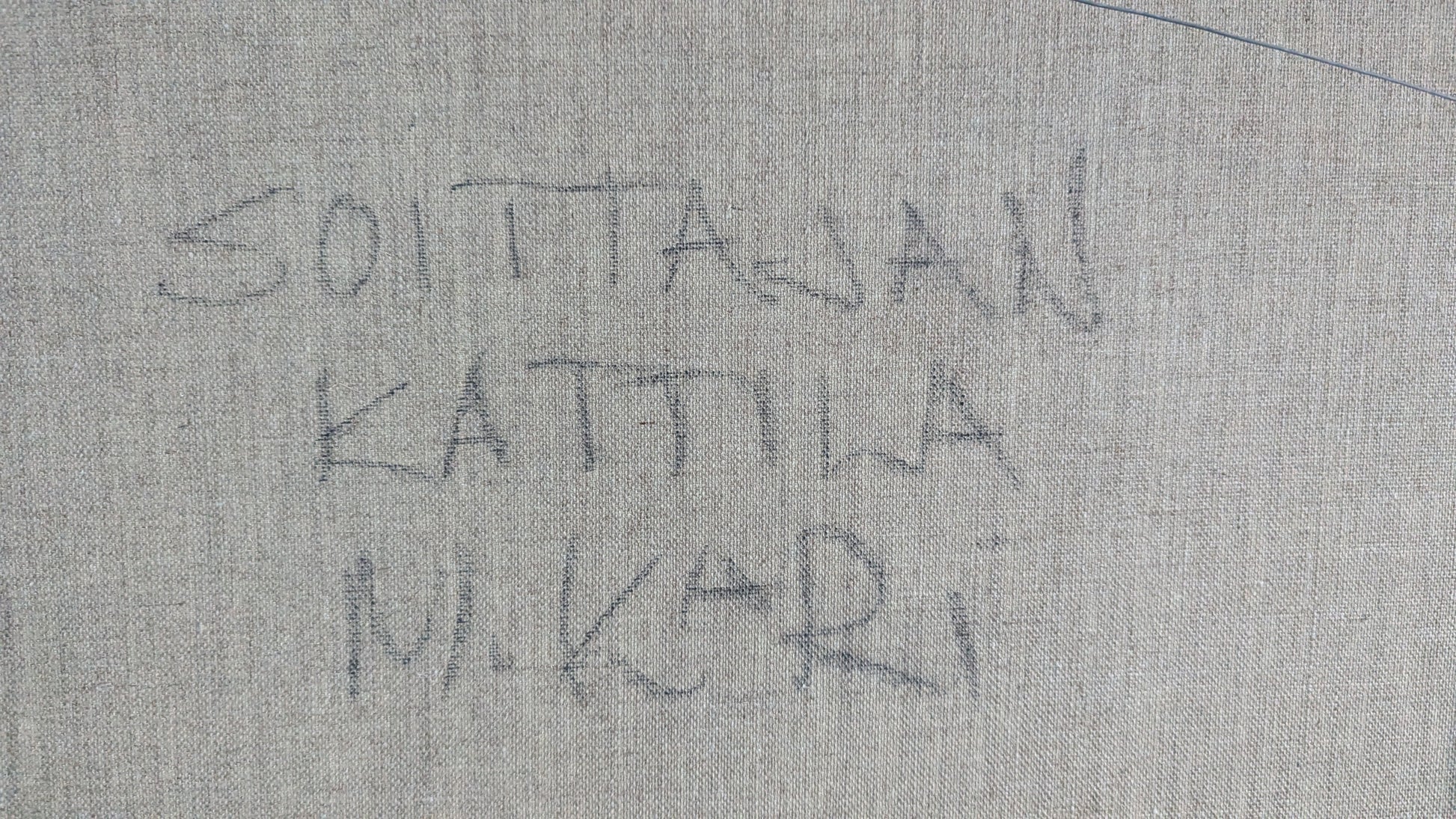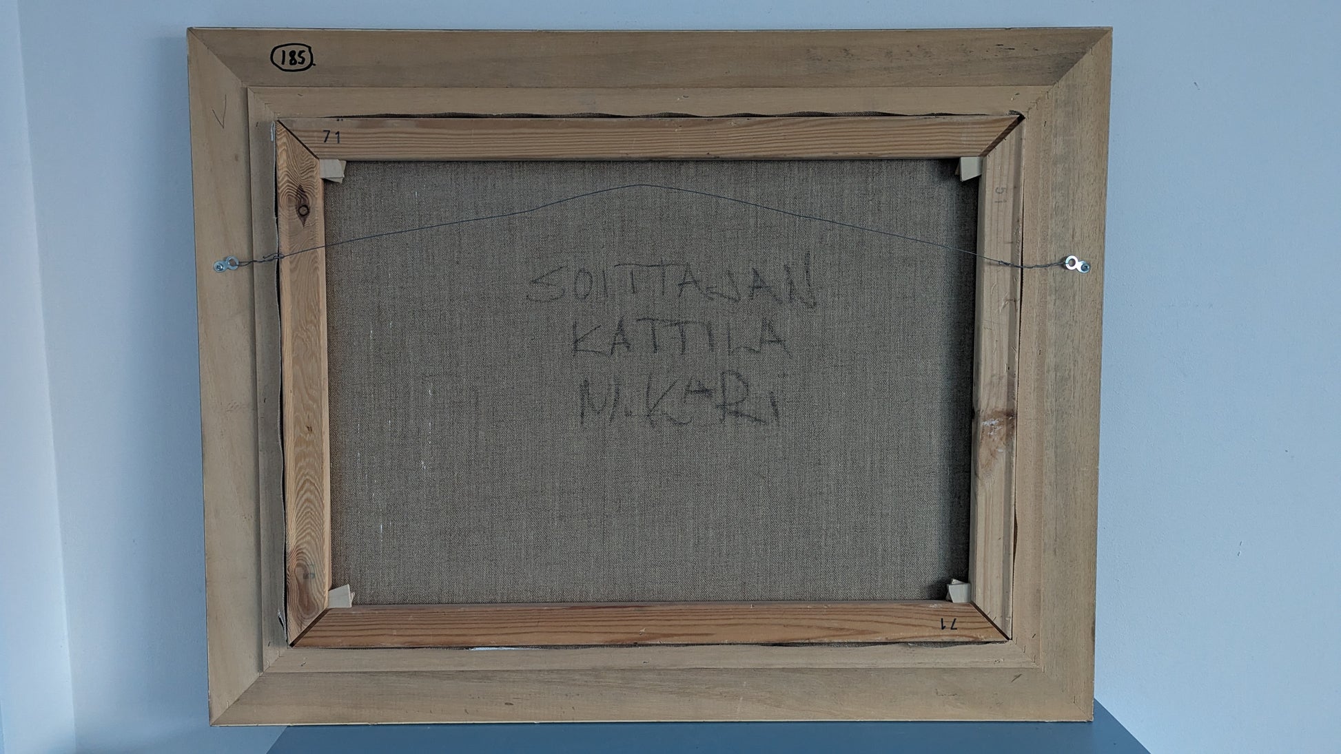Mika Karin signeeraama Soittajan Kattila niminen öljyvärityö.