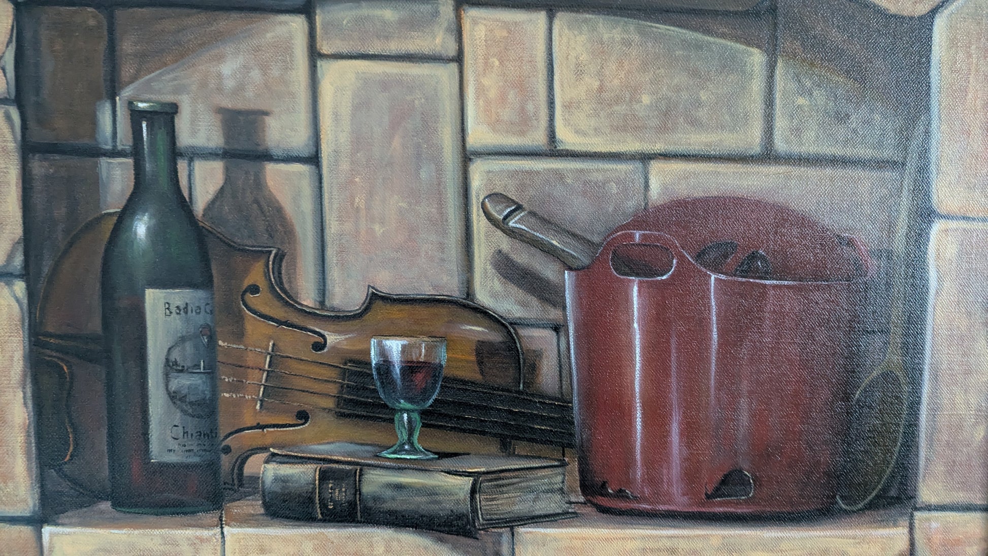 Mika Kari - Soittajan Kattila (Signeerattu Öljyvärimaalaus)