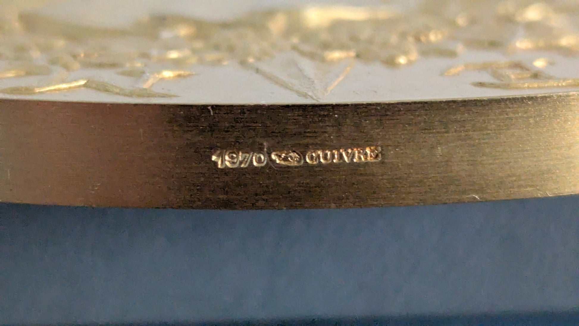 Reunaan on leimattu vuosiluku 1970, Cuivre (eli kupari) sekä Monnaie de Paris’n (Pariisin rahapajan) runsaudensarvileima.