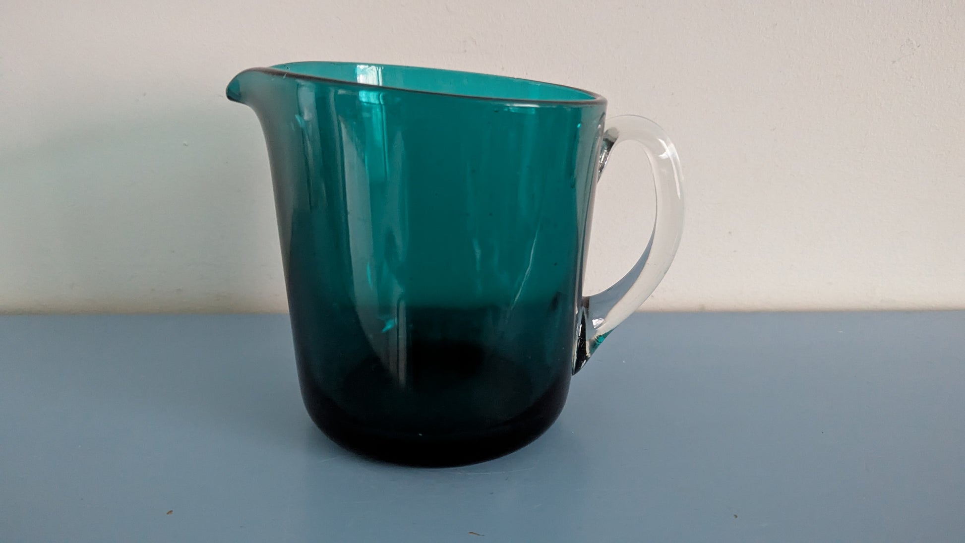 Kannua tehtiin vuosien 1954-1971 välisenä aikana. Kannu on puristelasia mutta nokka ja kahva tehtiin jokaiseen kannuun käsityönä. Kannua tehty useissa eri väreissä. Osassa kahva saattoi olla erivärinen kuin itse kannu.