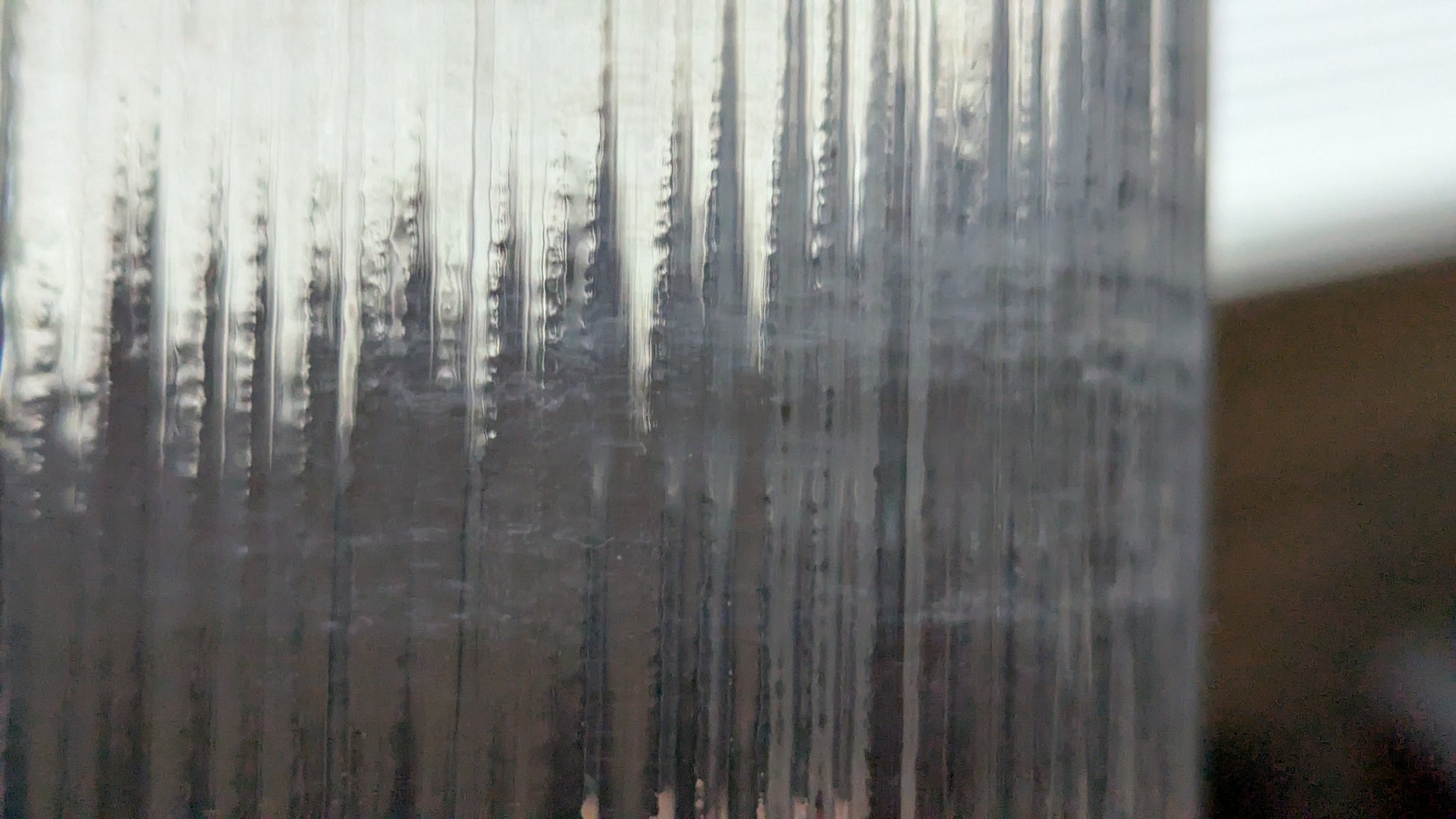 Ei halkeamia tai iskemiä. Sisäpuolella kalkkiraitoja / kalkkeumaa.