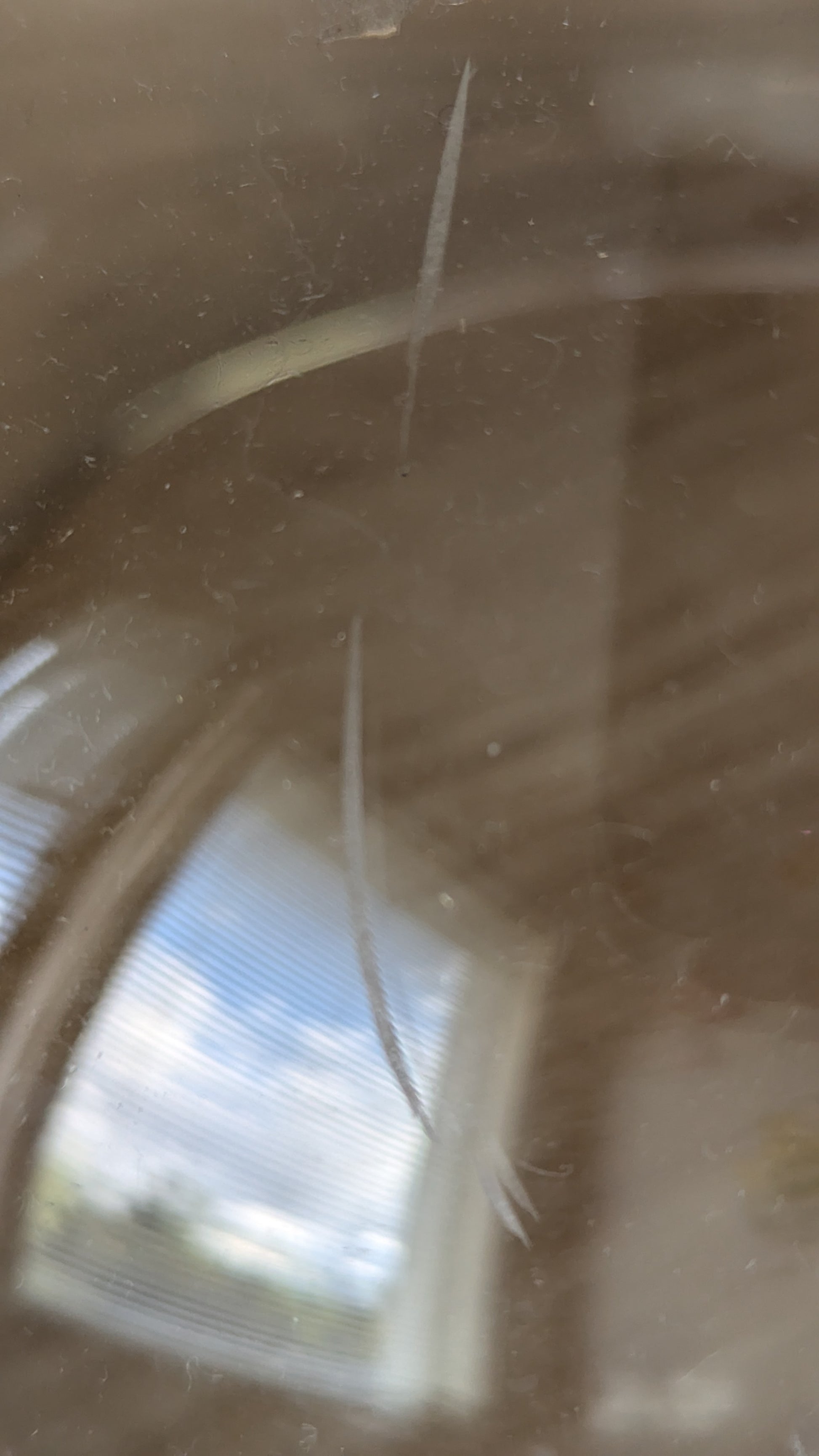 Alkuperäisessä paketissa. Nuutajärven tarra vielä paikalla. Ei iskemiä tai halkeamia mutta kyljessä yksi 5cm naarmu, joka näkyy viimeisessä kuvassa. Lisäksi muutamia pieniä naarmuja.