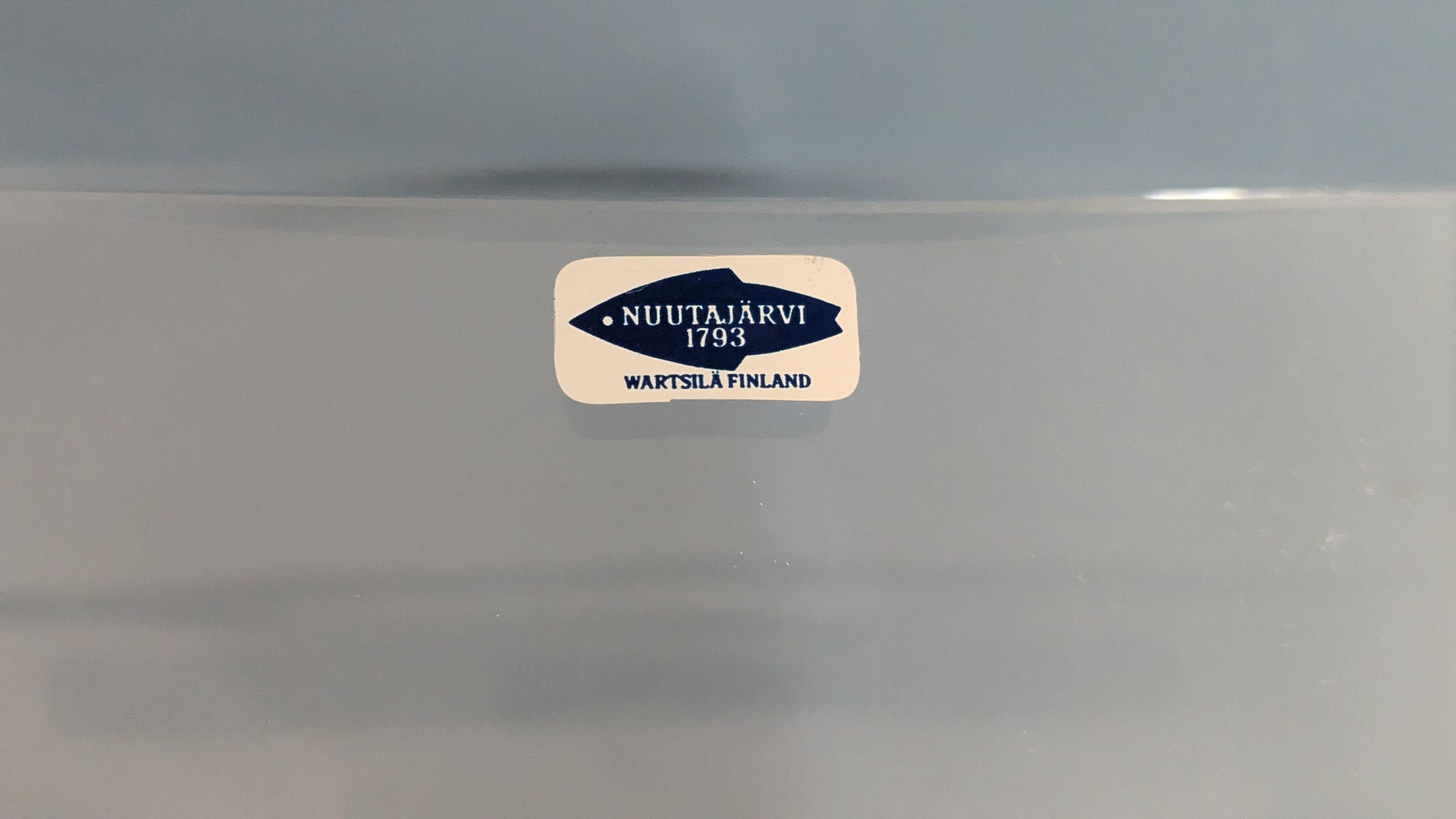 Nuutajärven tarra vielä paikalla. Ei iskemiä, halkeamia tai naarmuja. Pohjassa kaiverrus Aamulehti - yhtymä Oy. Näkyy viimeisessä kuvassa.