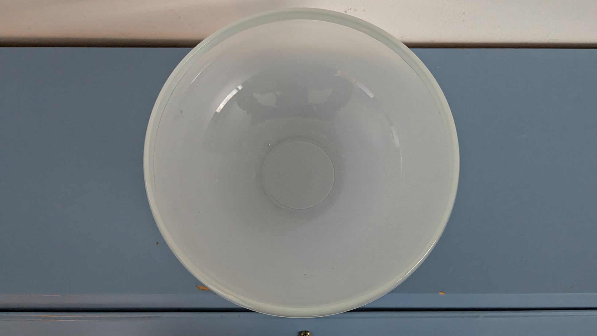 Ei iskemiä tai halkeamia. Pohjassa siirtelystä tullutta naarmua.