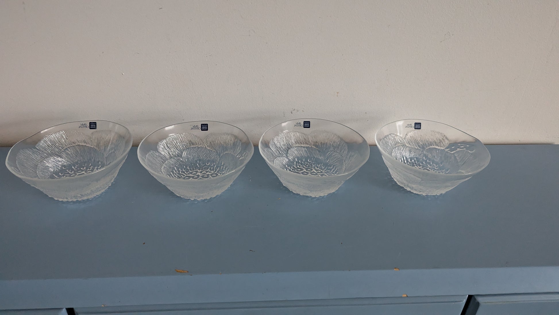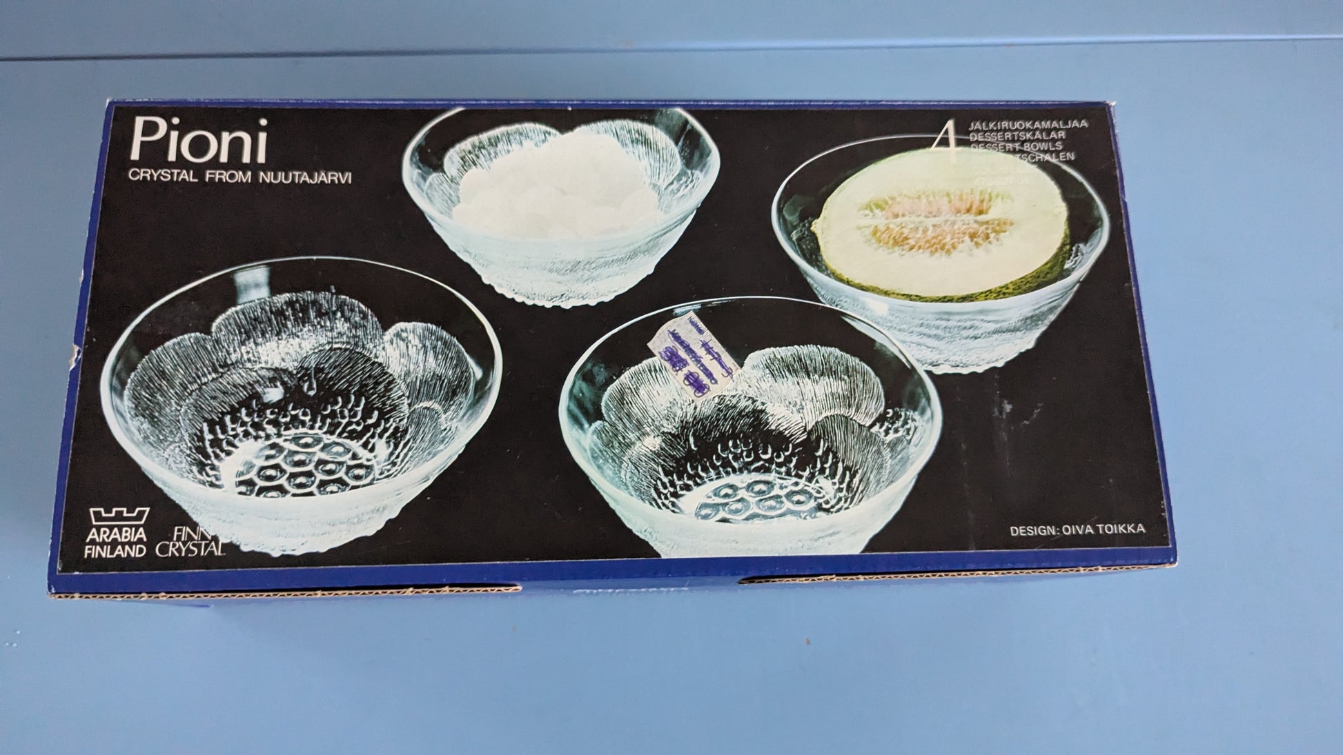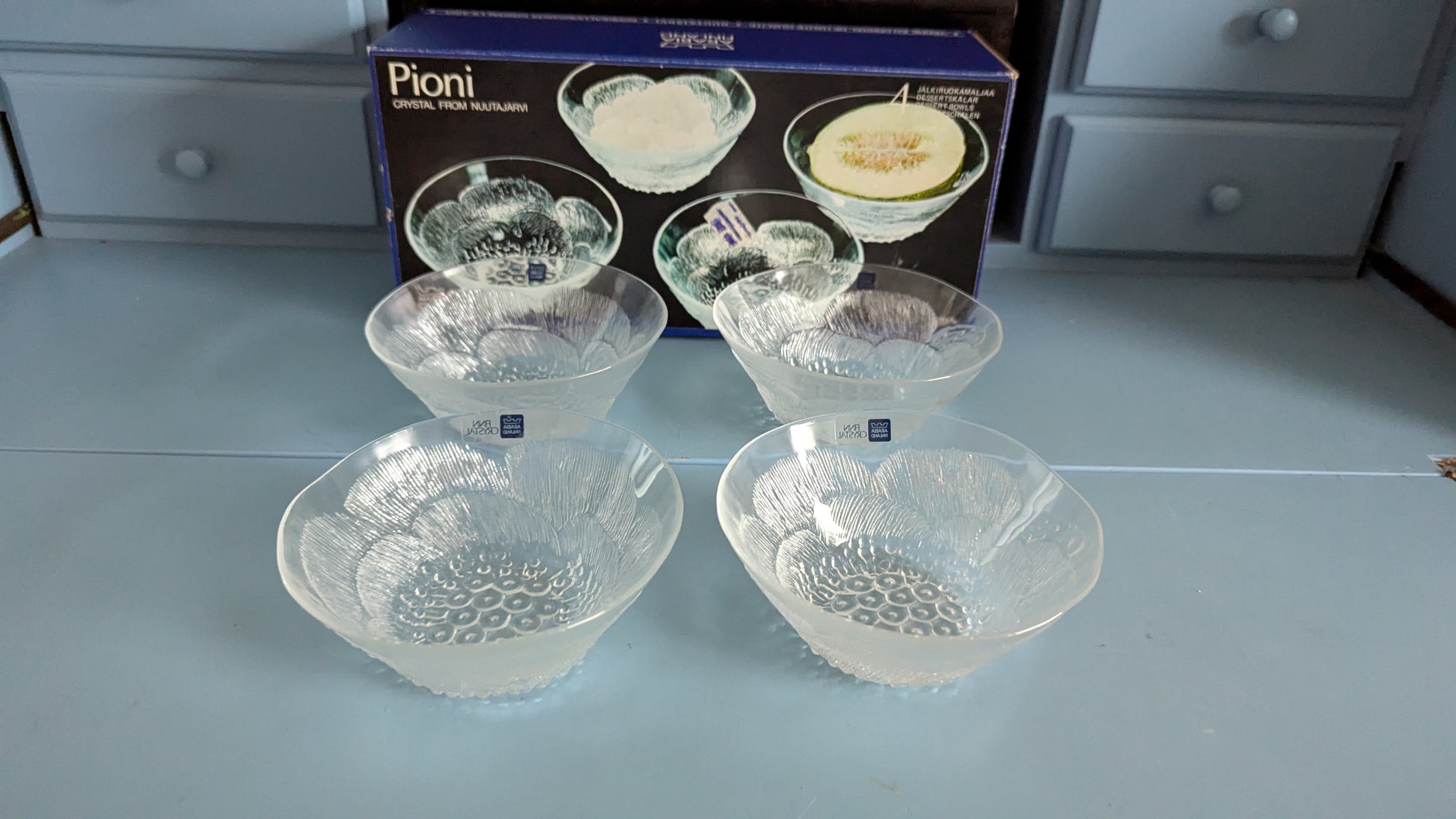 Nuutajärvi Pioni Annoskulho (4kpl, 1979-1984, Oiva Toikka, Alk. Pakkauksessa)