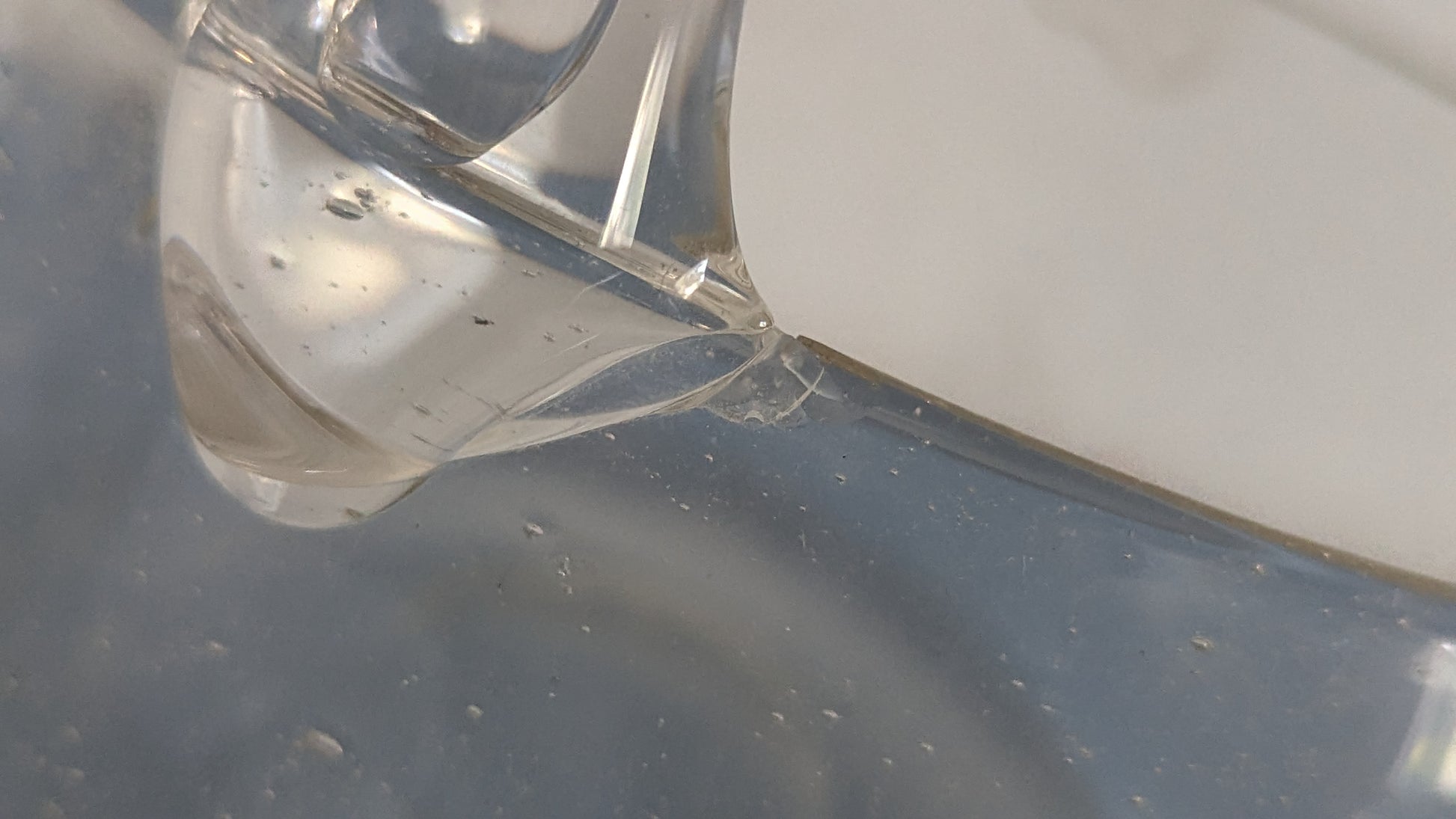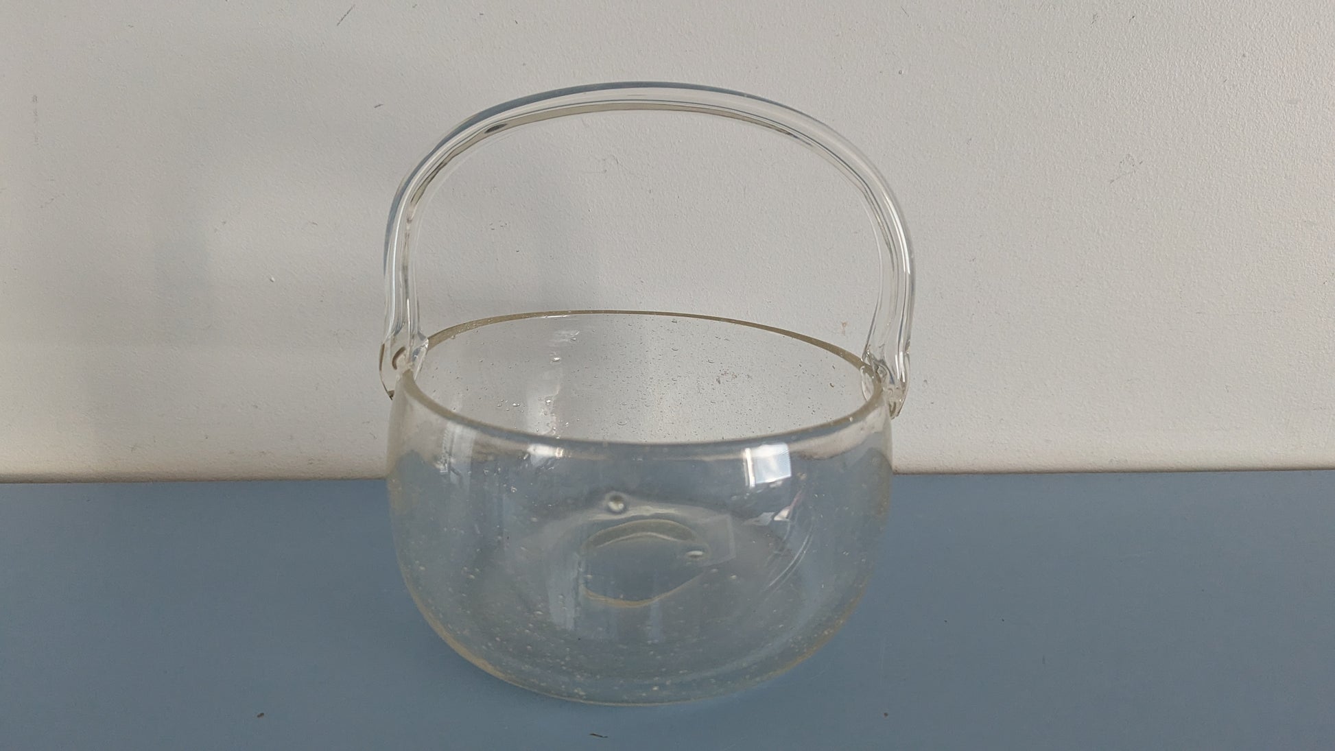 Ei iskemiä mutta toisen kahvan luona halkeama, mikä kiertää kahvan liitoskohdan yläreunasta aina alas asti ja liitoskohtaa mukaillen toiselta puolen takaisin ylös. Näkyy viimeisessä kuvassa. Kahva silti kiinni ja kestää nostella. Pohjassa naarmuja siirtelystä.