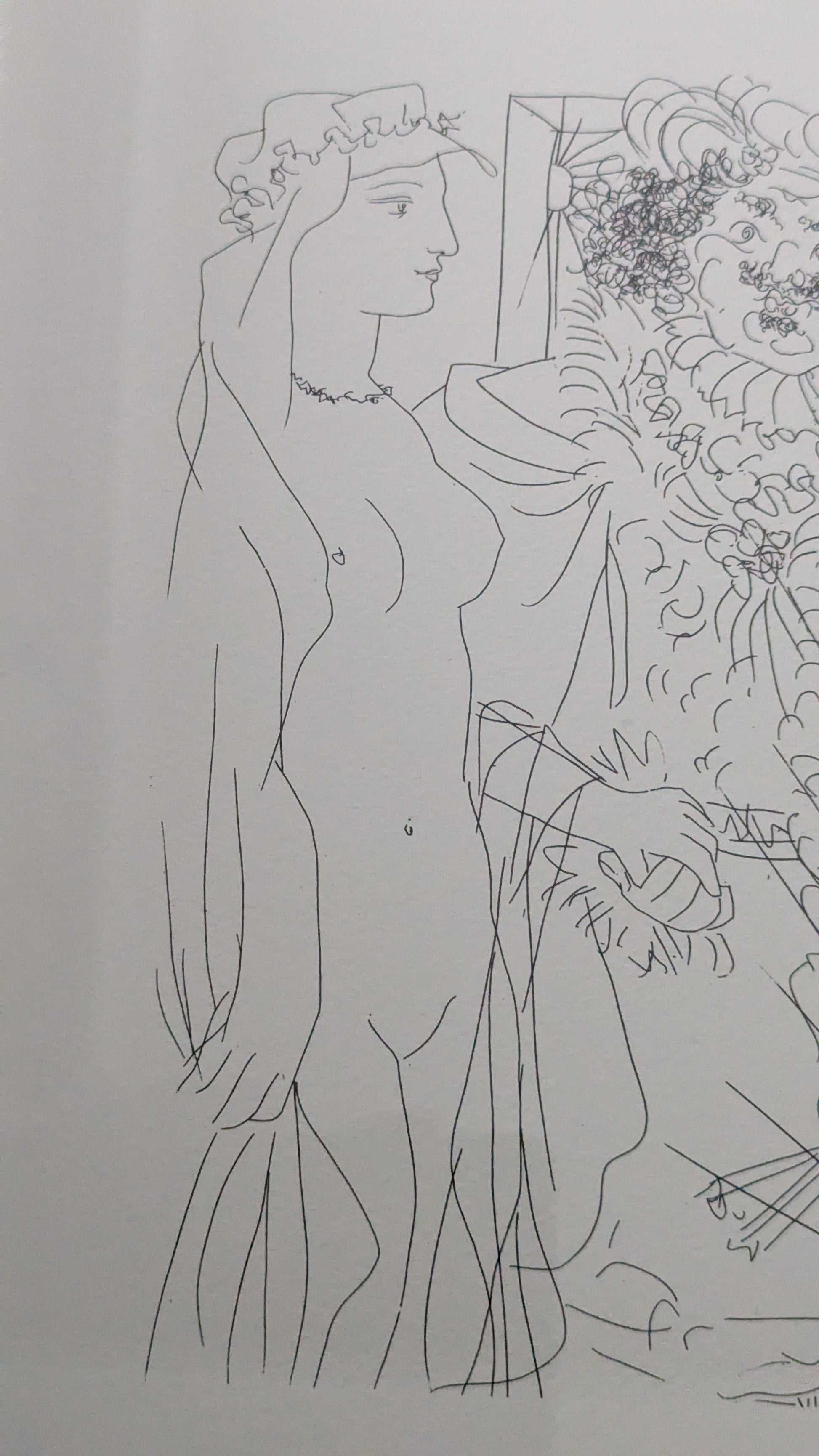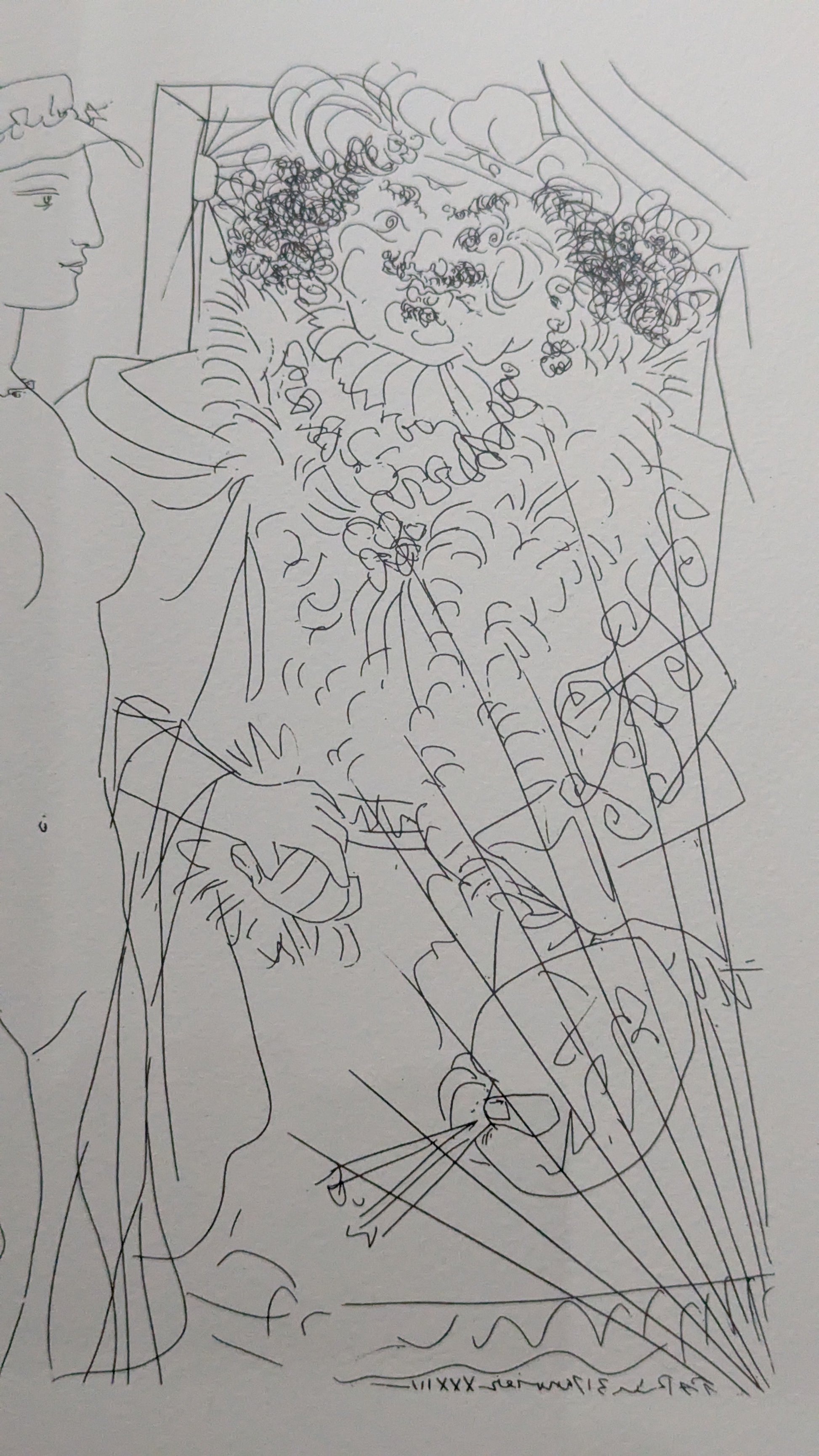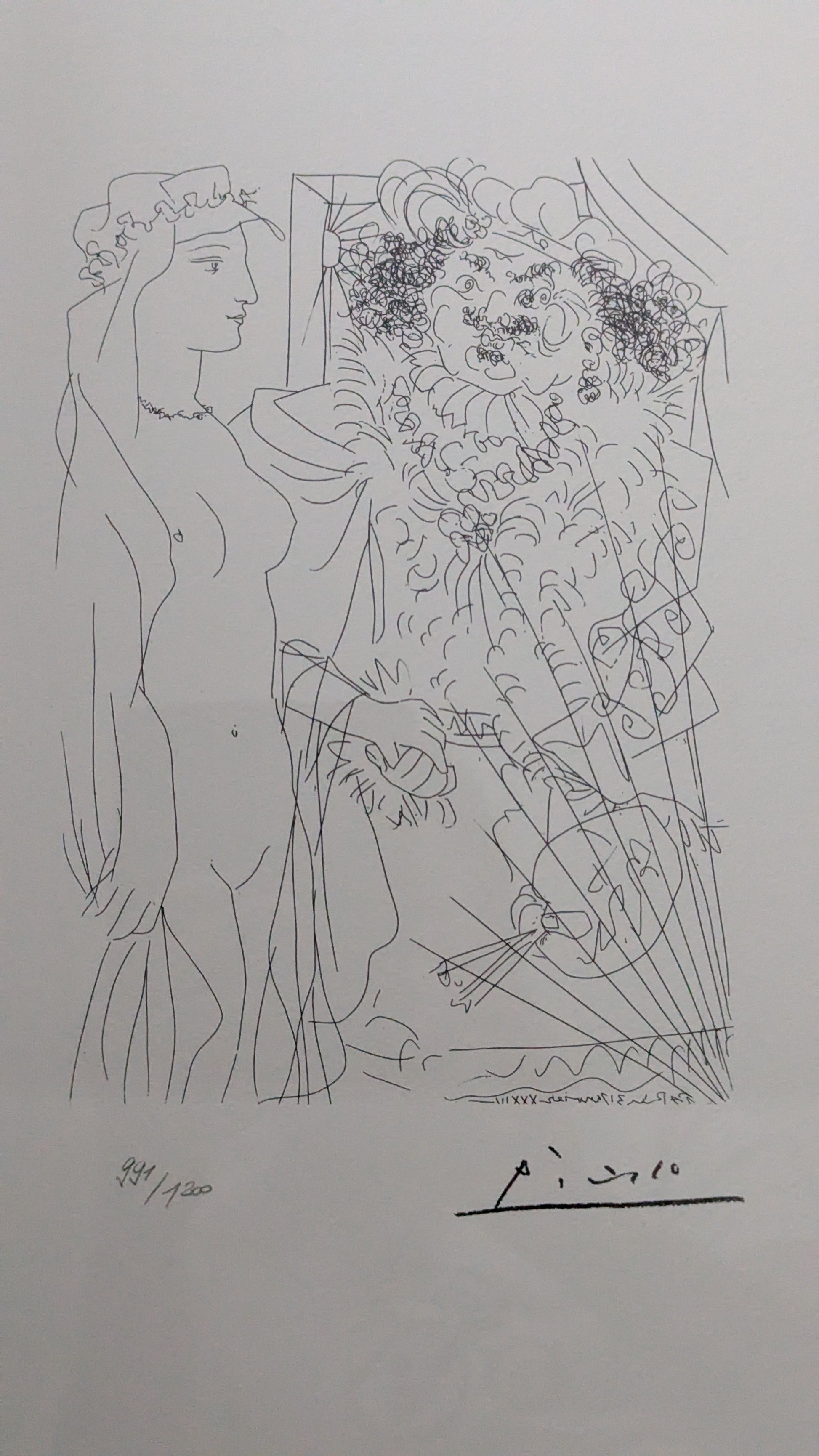 Teos on osa "Suite Vollard" -sarjaa, jonka Picasso toteutti vuonna 1933. Kyseessä on toinen vedos, joka on tehty Picasson perikunnan luvalla.