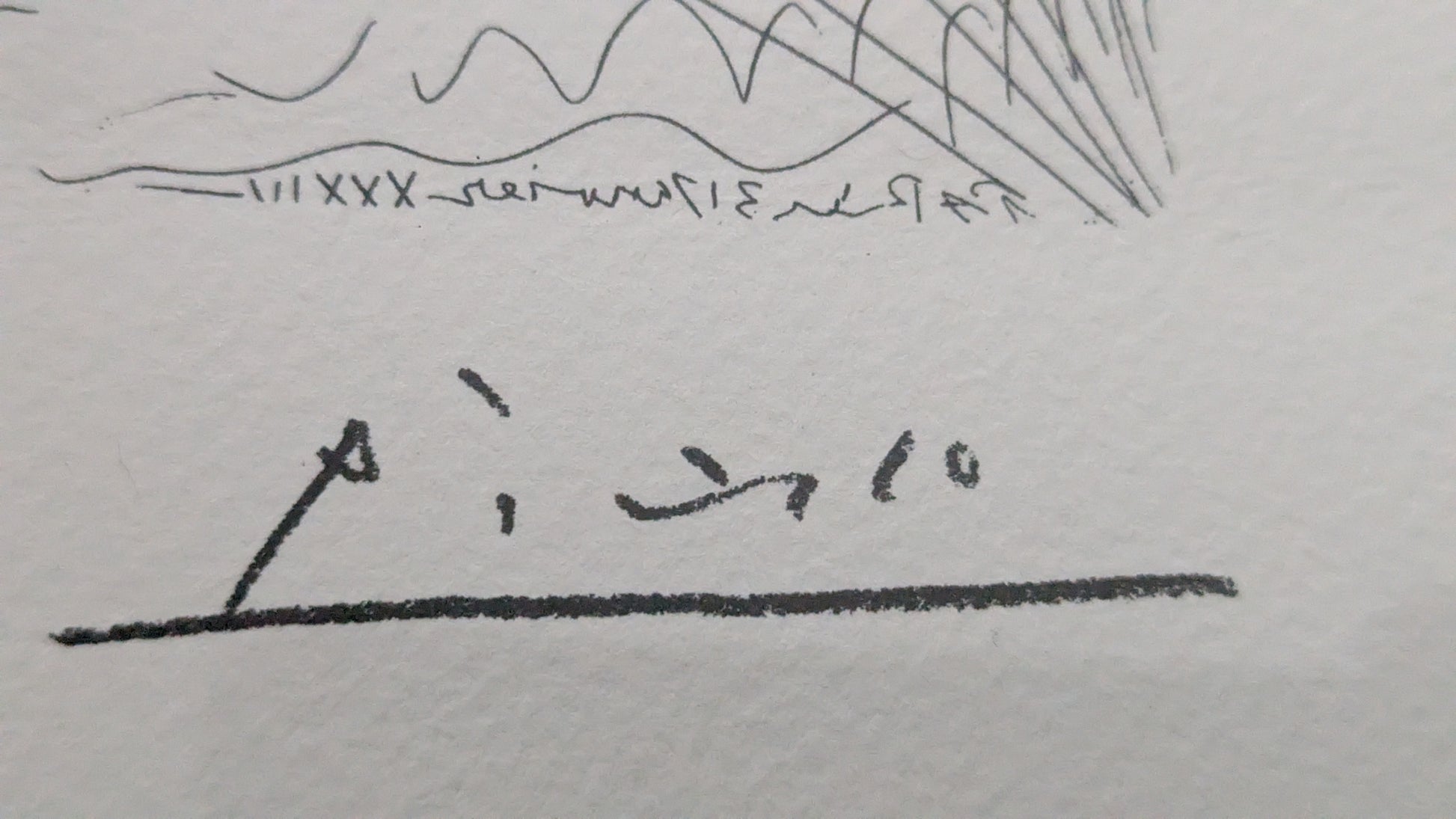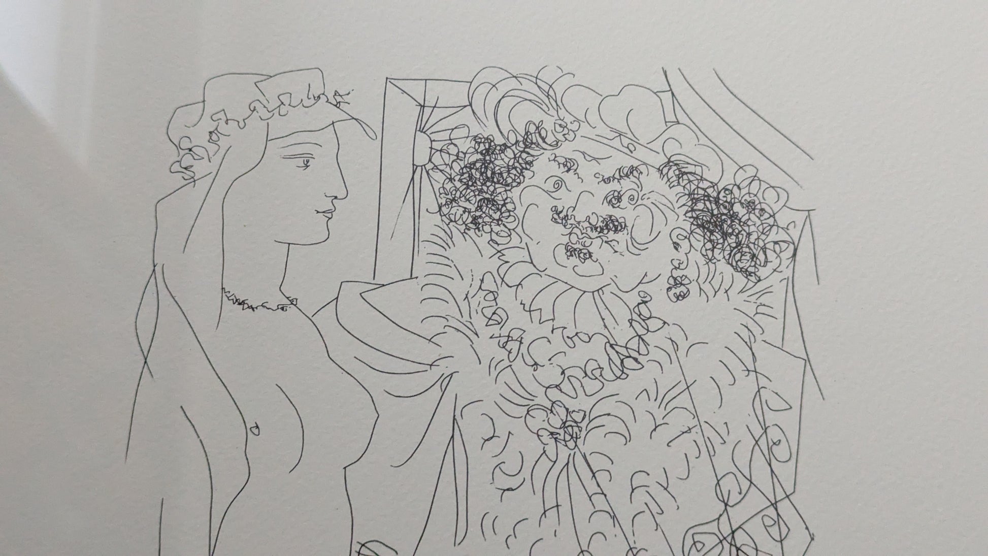 Pablo Picasson laattasigneerattu litografia. Teoksen virallinen nimi ilmeisesti Muusa ja maalari mutta näytetään kutsuvan myös nimellä Rembrandt ja hunnutettu nainen. Painettu Vélin Arches -paperille. Painos rajoitettu 1200 kappaleeseen. Jokainen painos numeroitu lyijykynällä. Tämän numero on 991/1200