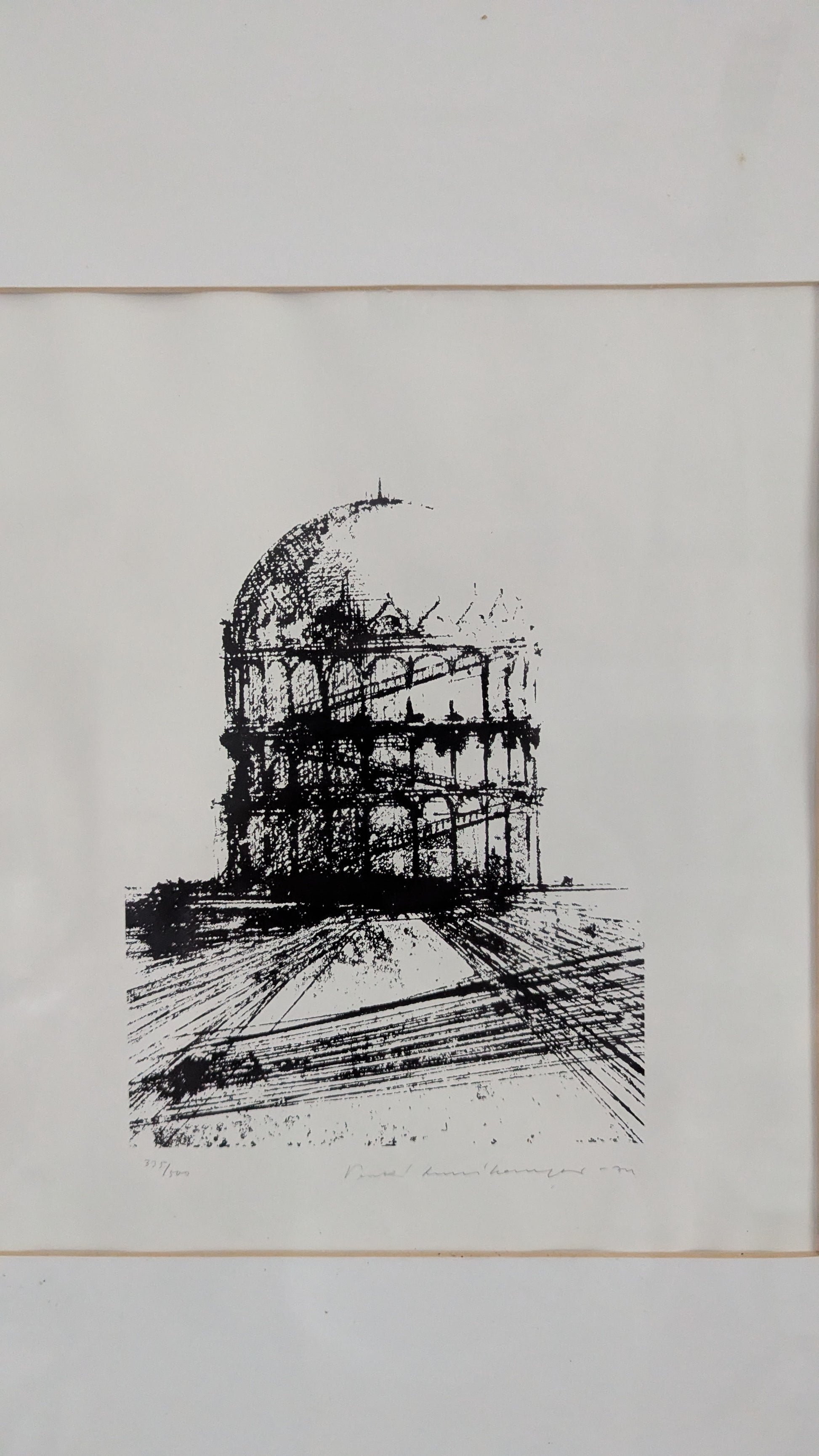Teoksen alla numerointi 335/500, taiteilijan signeeraus, ja vuosiluku -74.