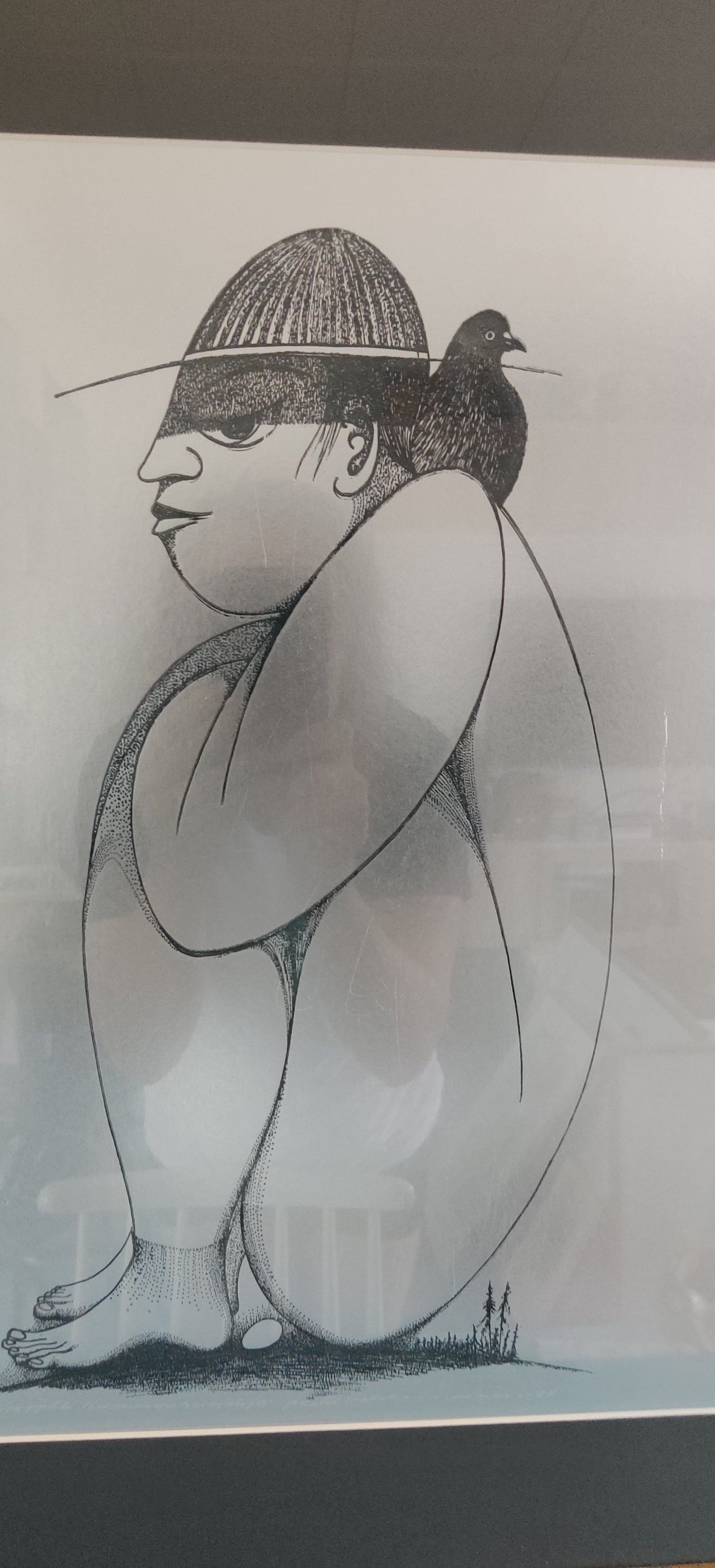 Teoksen alla vedosmerkintä Tpl'a eli kyseessä taiteilijan itsensä tekemä vedos. Lisäksi numerointi 4/15, teoksen nimi, taiteilijan signeeraus, ja vuosiluku -85.