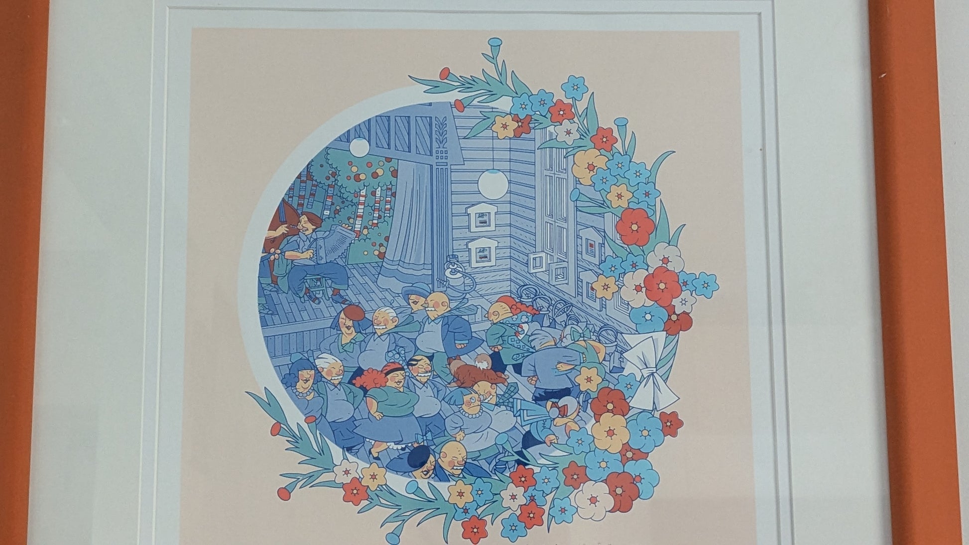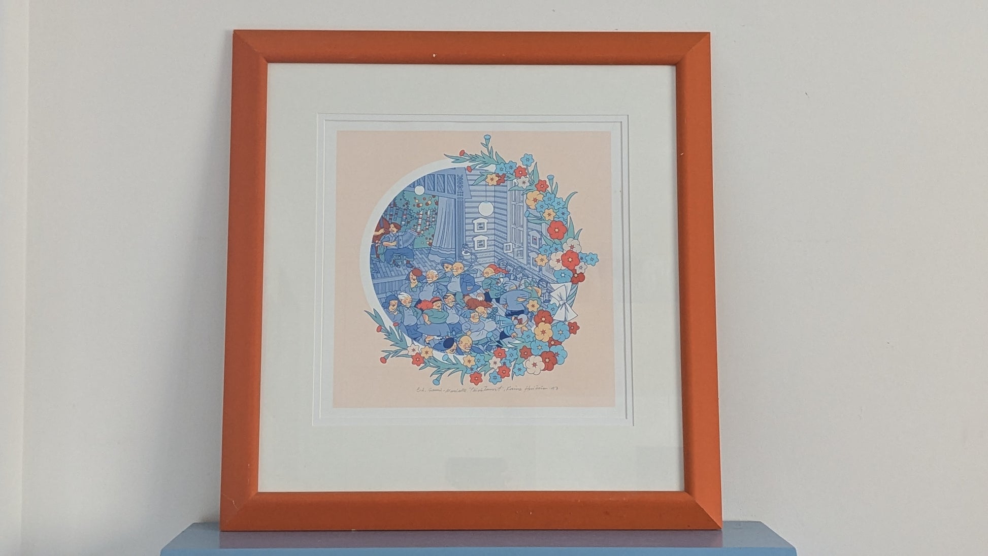 Teoksen alla merkintä EA eli kyseessä ns. taiteilijasarjan vedos. Taiteilija voi ottaa omaan käyttöönsä pienen sarjan vedoksia. Taiteilijasarja saa olla enintään 10% varsinaisesta vedossarjasta. Lisäksi teoksen nimi, taiteilijan signeeraus ja vuosiluku -97 sekä omistuskirjoitus " Sanni-Marialle "