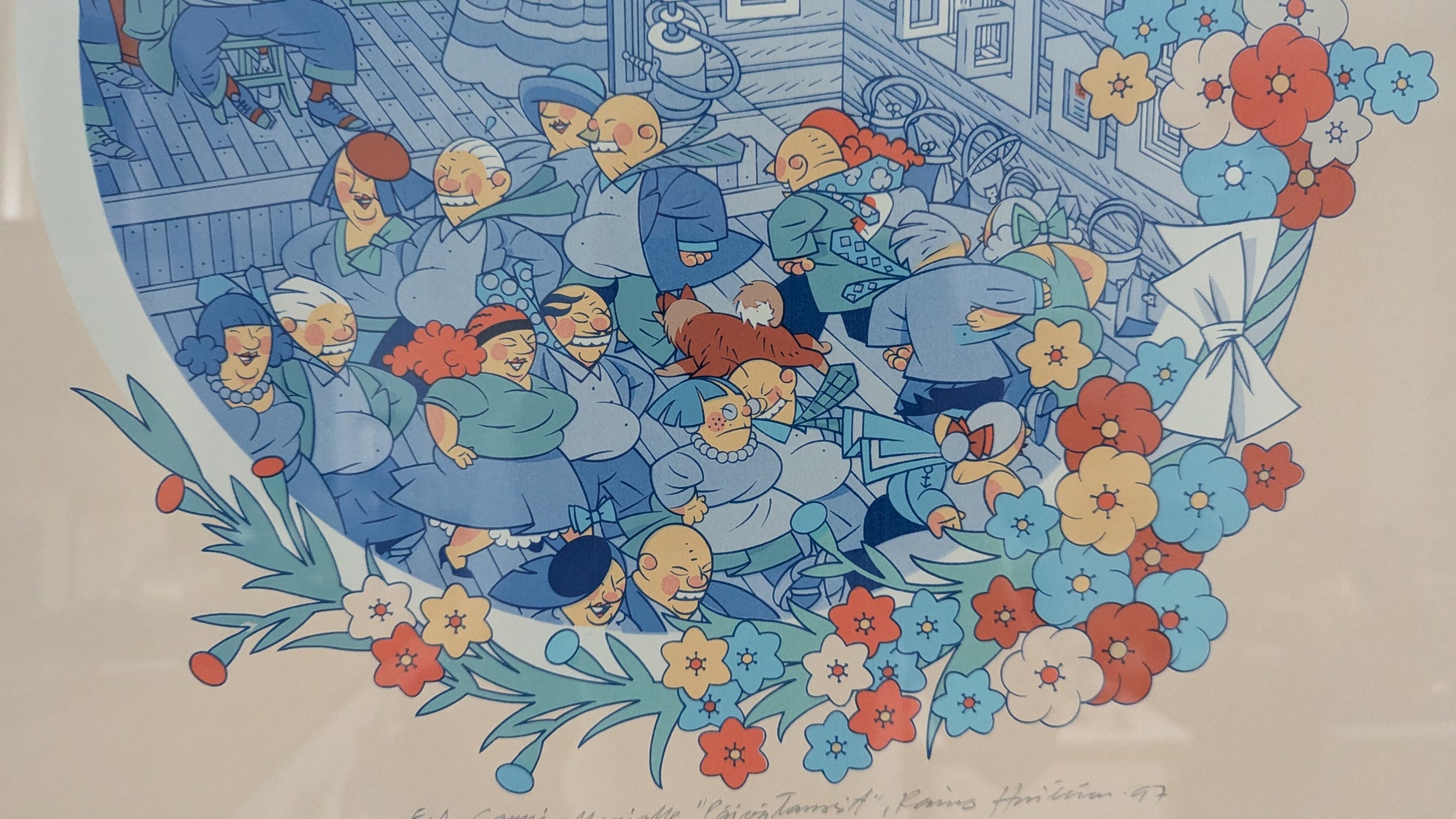 Raimo Huittisen signeeraama ja numeroima Päivätanssit niminen grafiikka vuodelta 1997.