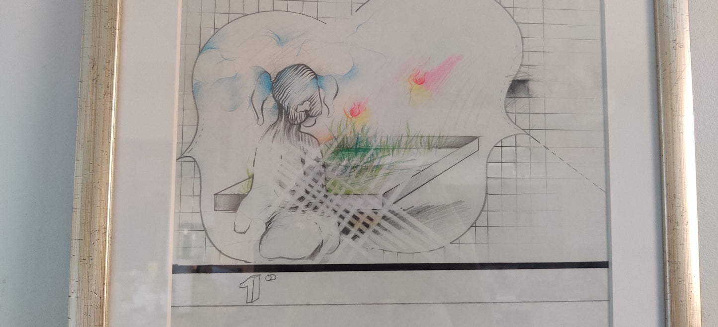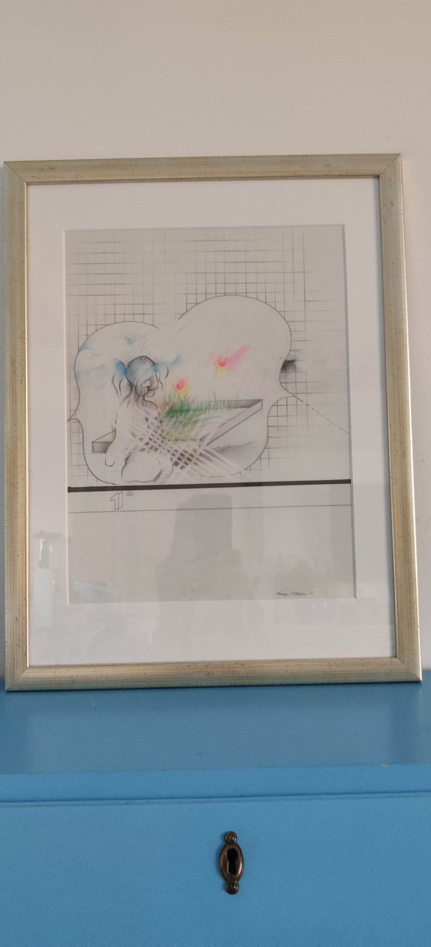 Raimo Kanervan signeeraama uniikki sekatekniikkatyö vuodelta 1971.