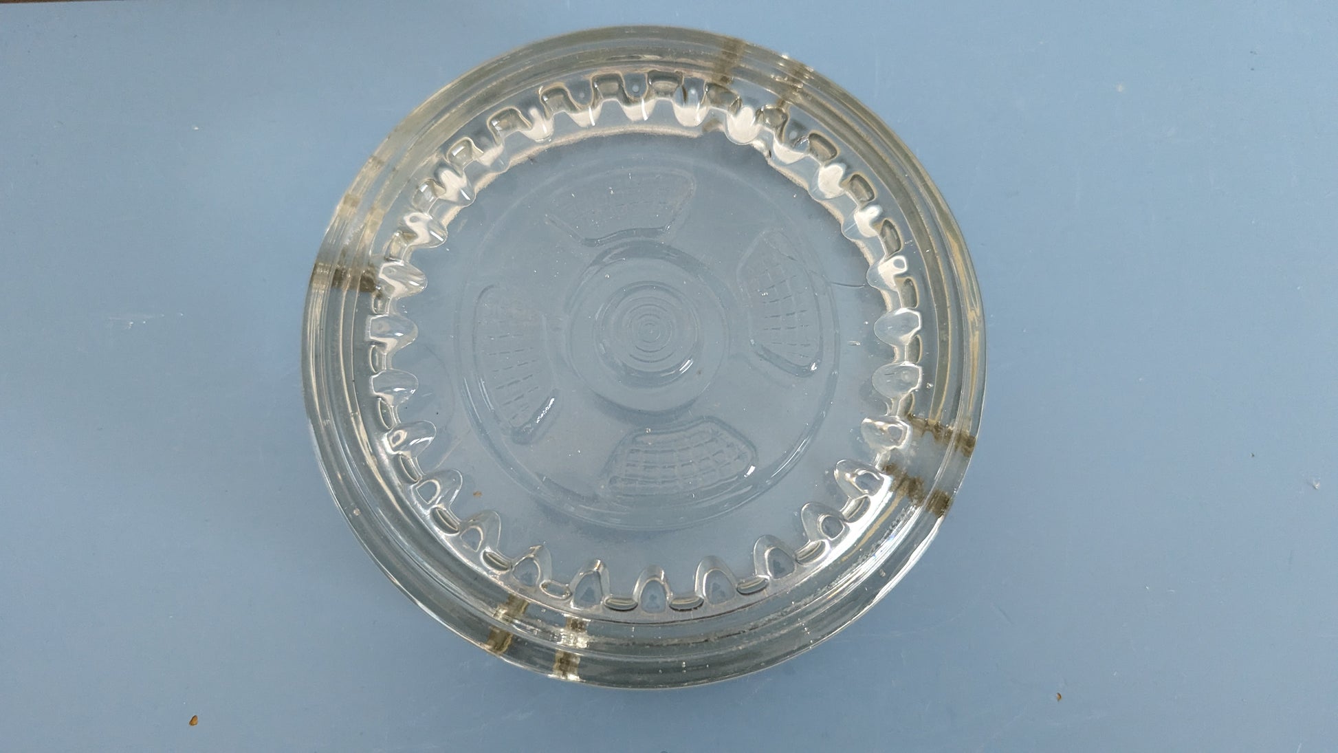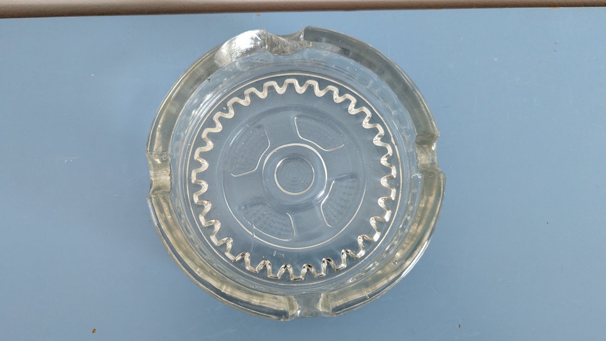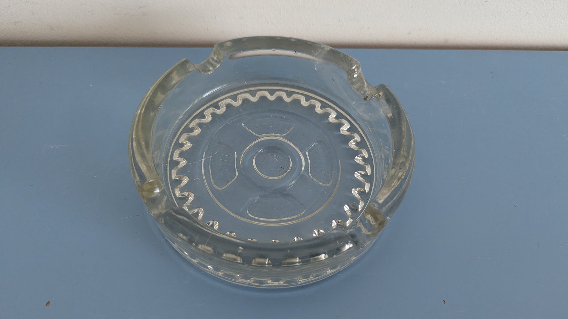 Pohjassa hammasratasta muistuttava kuviointi. Löytyy ainakin Riihimäen lasin vuoden 1939 kuvastosta.