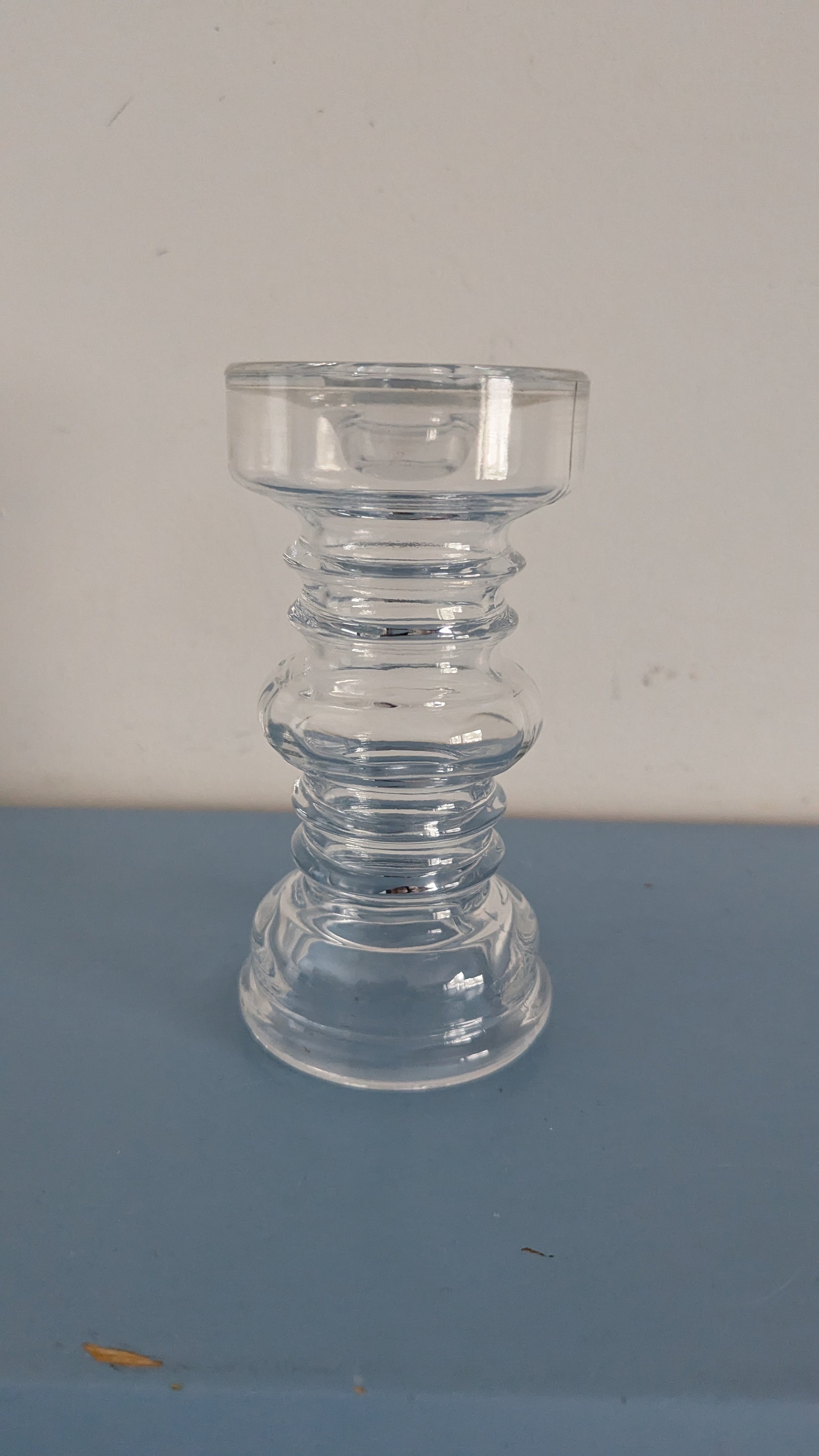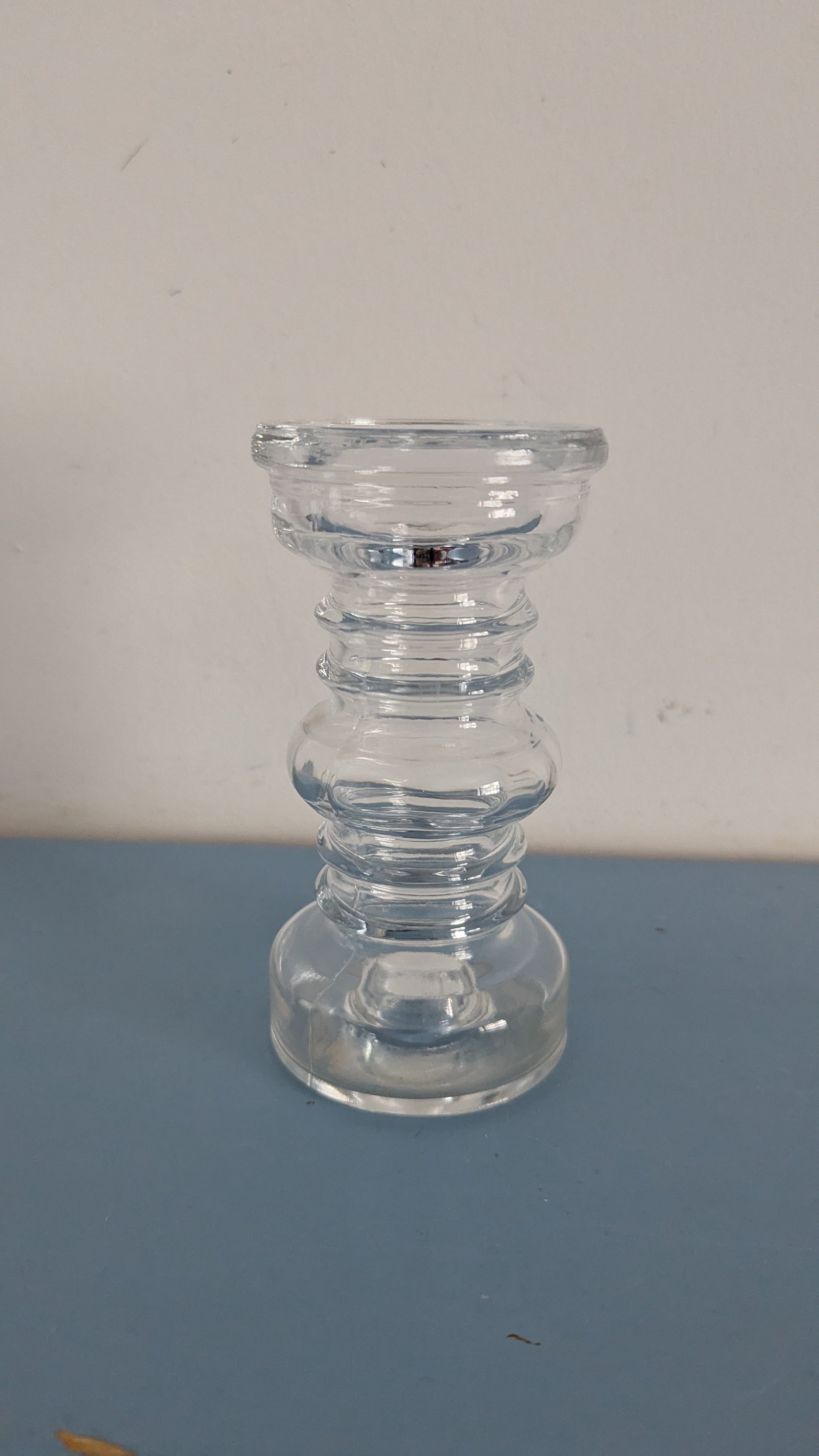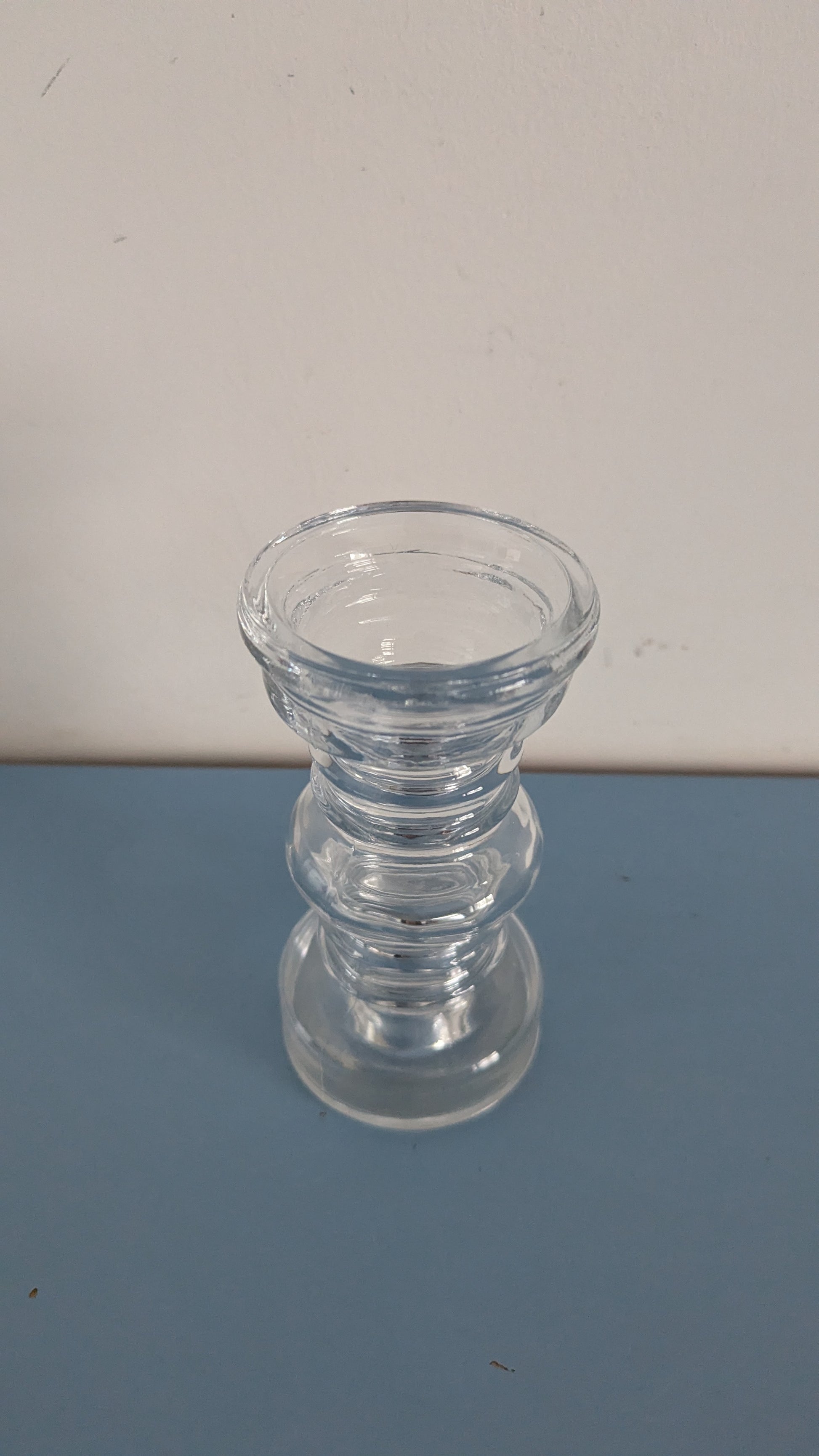 Toimii toisinpäin maljakkona ja toisinpäin käännettynä kynttilänjalkana 2.4cm halkaisijaltaan oleville kynttilöille.