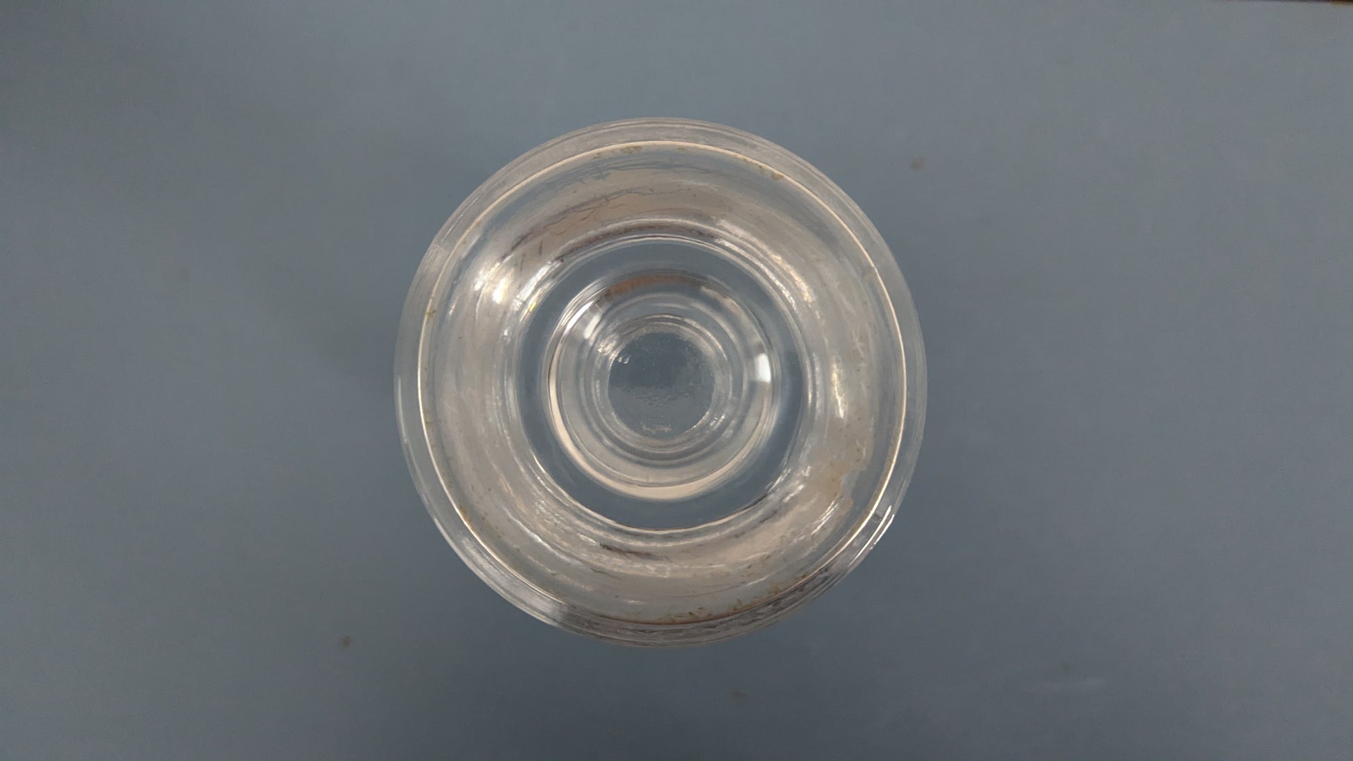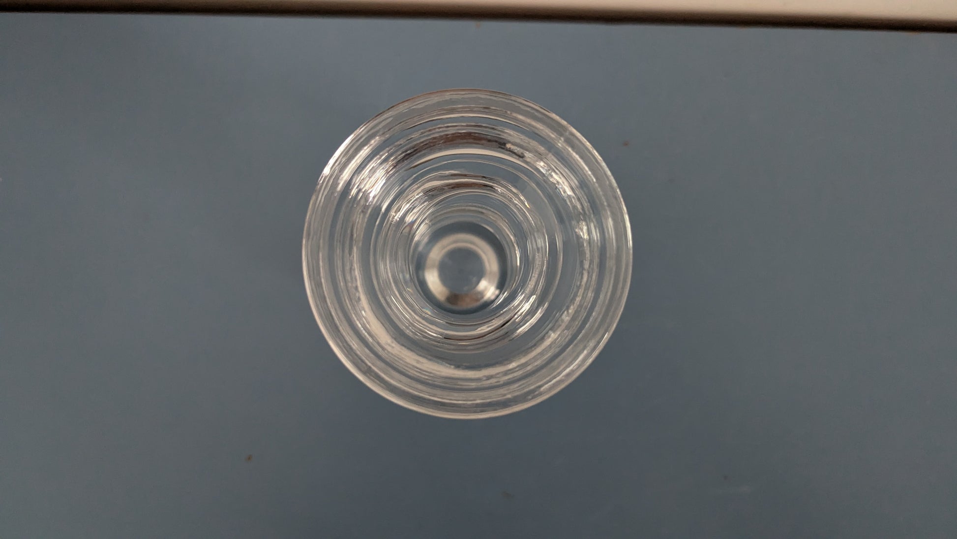Ei iskemiä, halkeamia tai naarmuja. Pohjalla hieman samentumaa.
