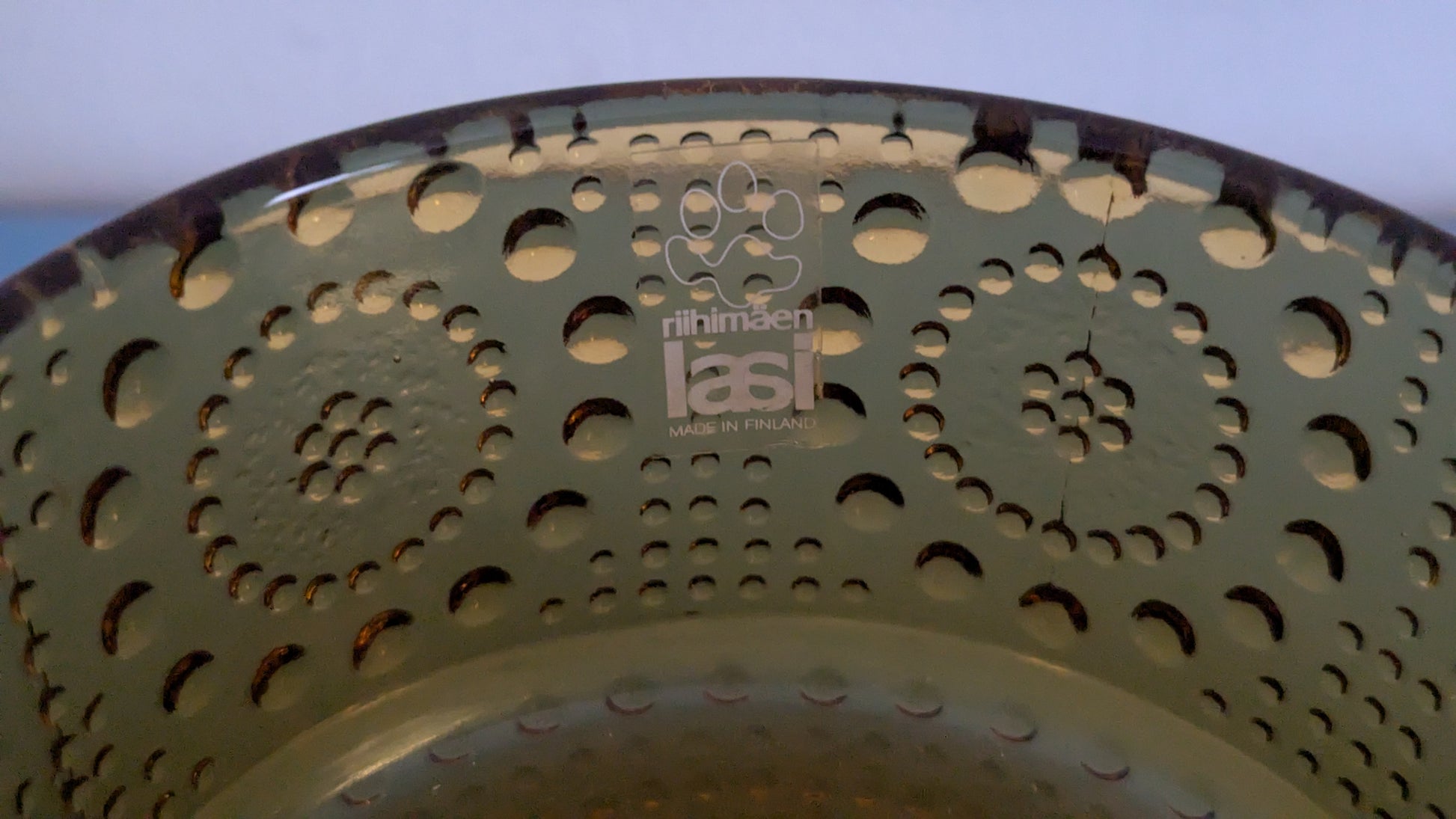 Yhdessä vielä Riihimäen lasin tarra paikalla. Ei iskemiä, halkeamia tai naarmuja.
