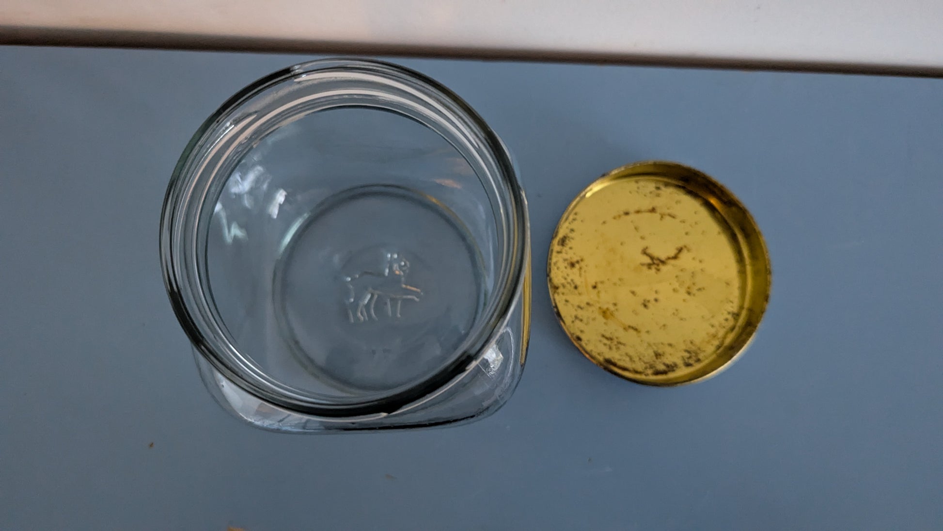Tölkissä ei iskemiä tai halkeamia mutta alumiininen korkin sisäpuolella ruostetta. Korkissa myös kulumaa.