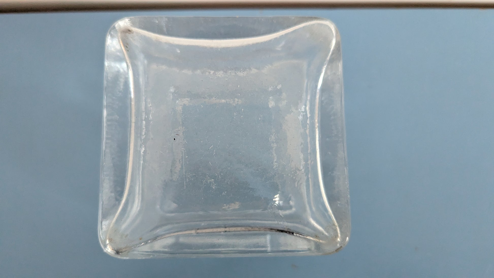 Riihimäen tarra vielä paikalla. Ei iskemiä tai halkeamia. Pohjassa jälkeä siirtelystä.